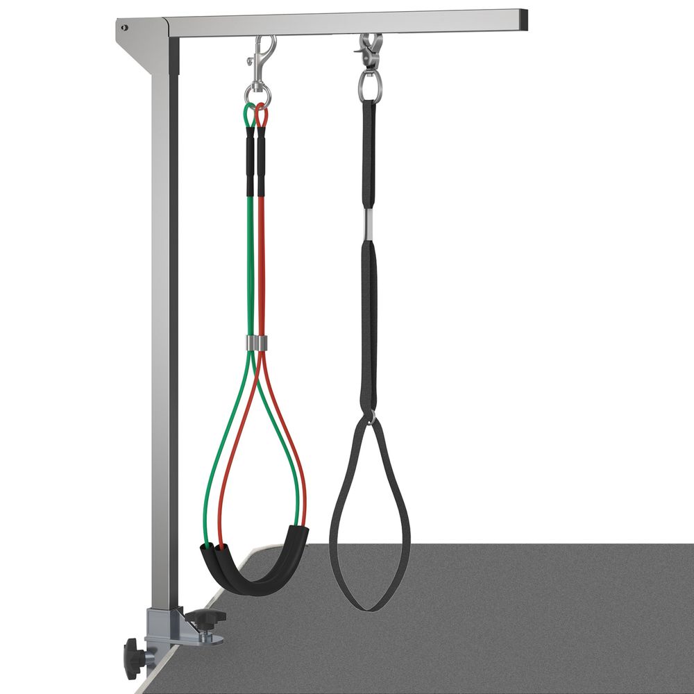 PawHut Foldable Pet Grooming Arm w/Clamp 30 Inch Height Adjustable, Dog Grooming Loop, Two No Sit Haunch Holders for Small Medium Dogs, Sliver