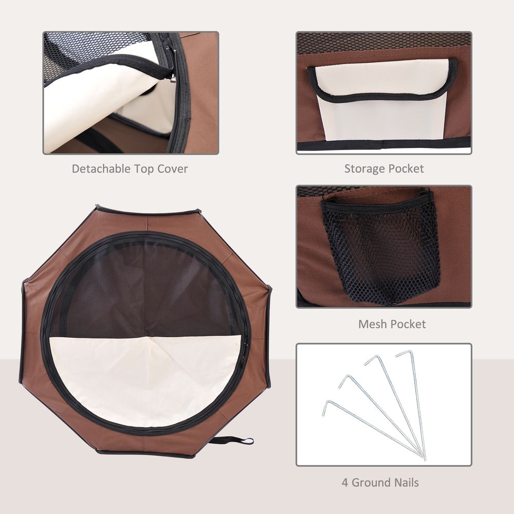 PawHut Portable Cat Dog Playpen Pet Puppy Rabbit Guinea Pig Pen Run Dia 90 x 41H cm Indoor & Outdoor Brown