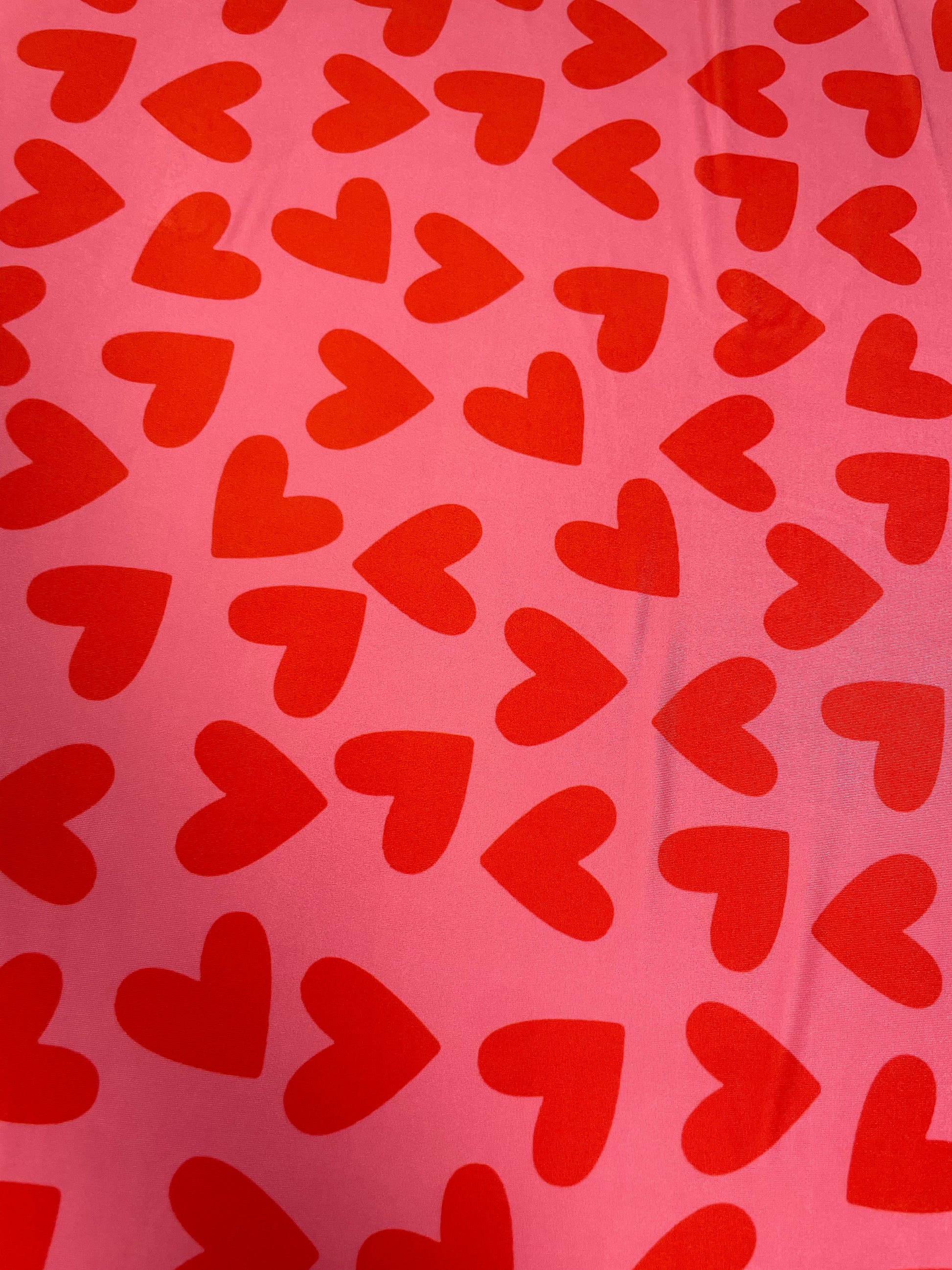 Pink Heart Print Spandex Fabric by the Metre – Soft Material
