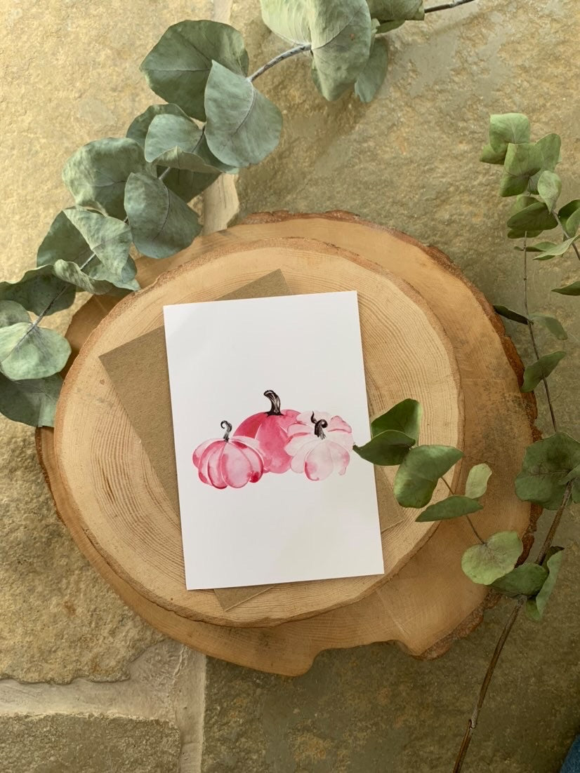 Pink Pumpkin Trio Autumn Seasonal Wall Home Decor Print