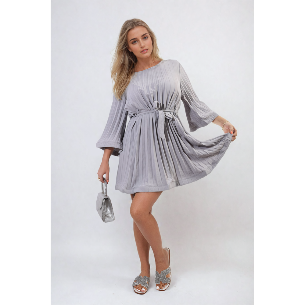 Elevate your wardrobe with this effortlessly chic and elegant mini dress that's perfect for any occasion. The Carmen Pleated Tie Waist Mini Dress features exquisite pleating detail, creating a sophisticated texture and flow. The tie waist design cinches at the waist, highlighting your silhouette for a flattering fit that oozes confidence and grace. 😍