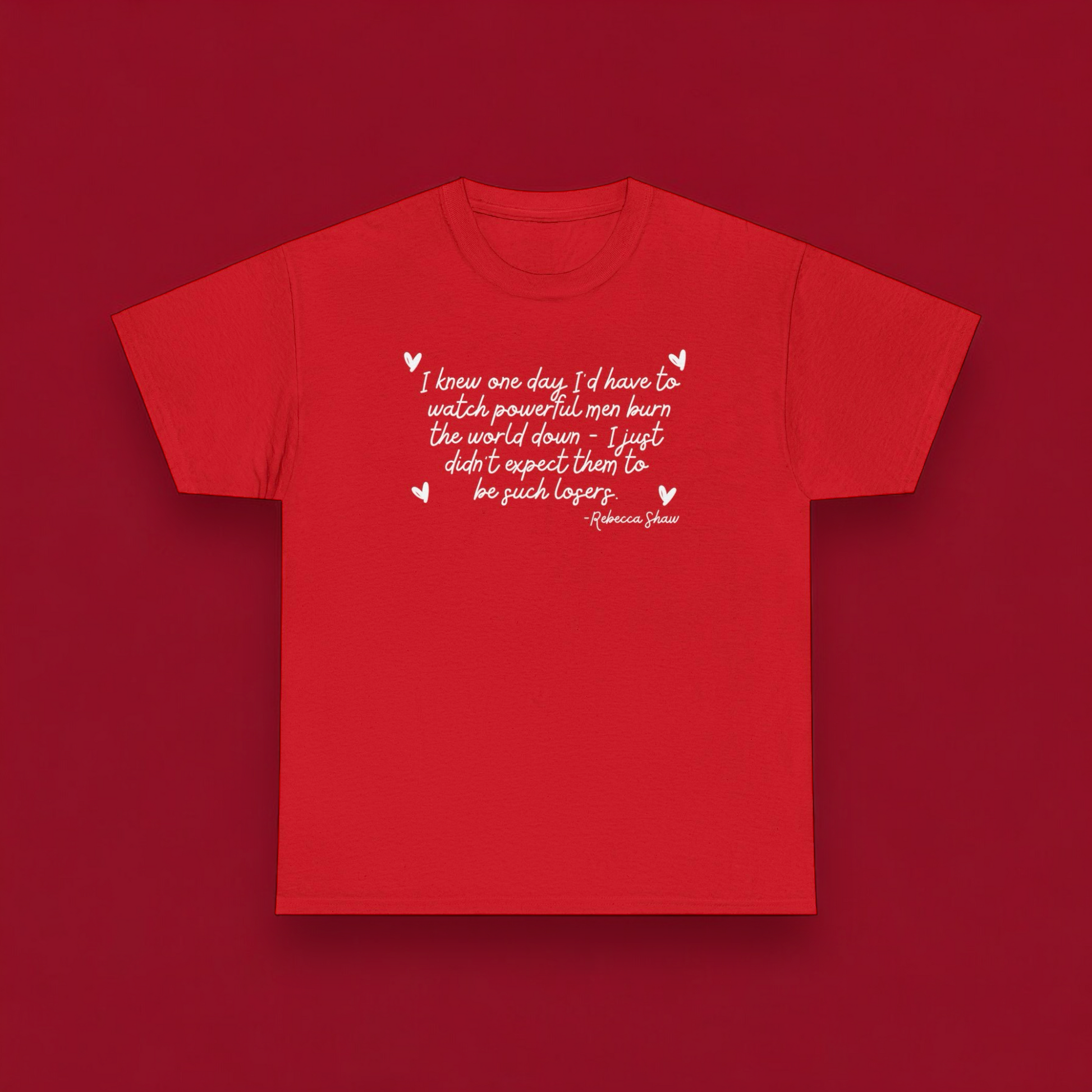 I knew one day I’d have to watch powerful men burn the world down – I just didn’t expect them to be such losers - Rebecca Shaw