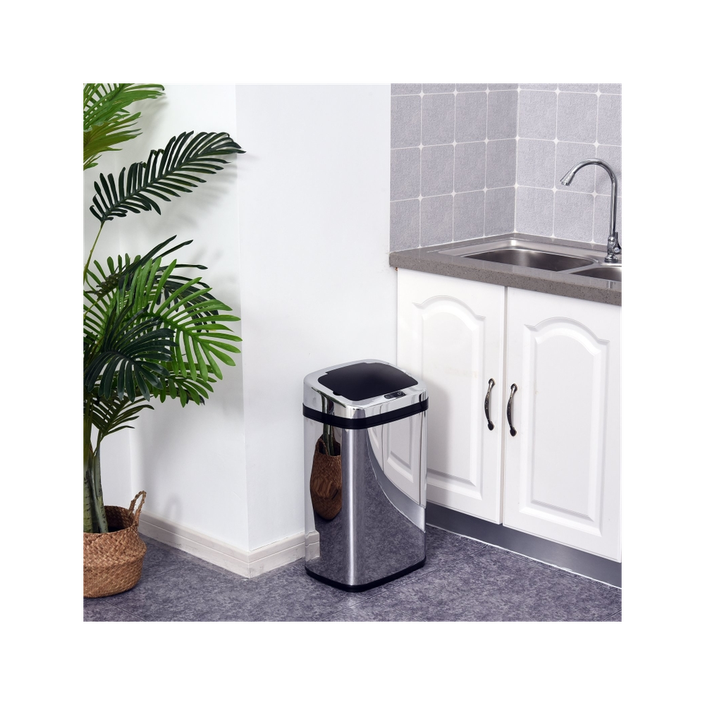 Premium 30L Silver Automatic Kitchen Bin - Lid, Infrared Sensor - High Quality Stainless Steel