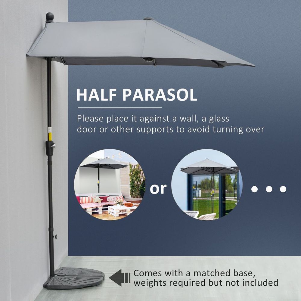 Premium Outsunny 2m Half Garden Parasol - Crank Handle, Dark Grey - Quality Guaranteed!