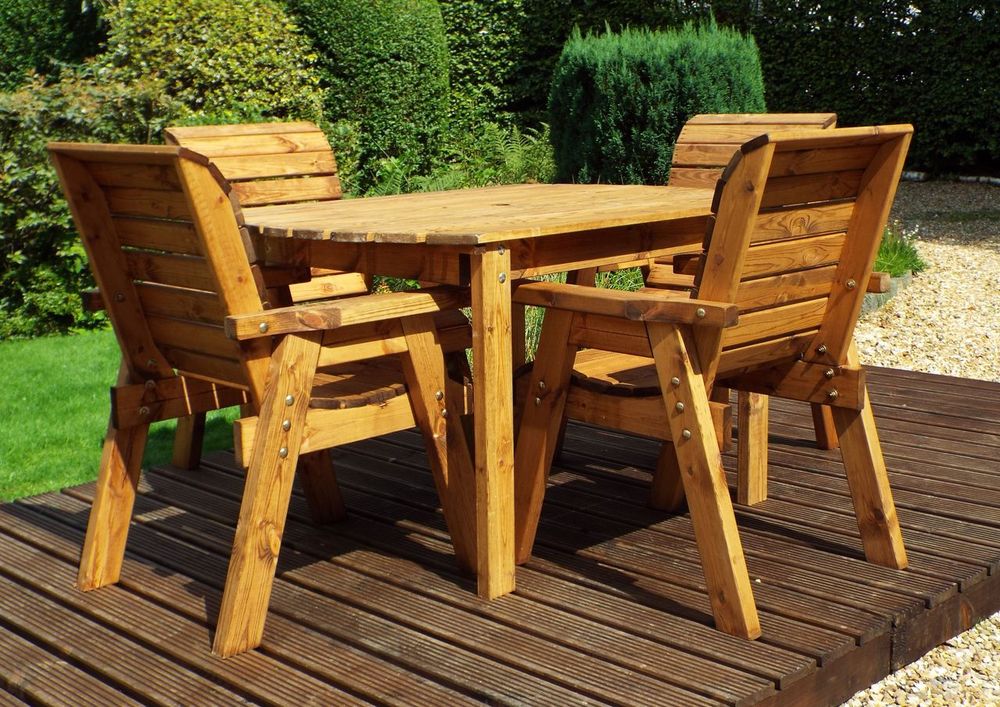 Premium Wood Outdoor Dining Set - 4 Seater Rect Table with Armchairs & 10 Year Guarantee