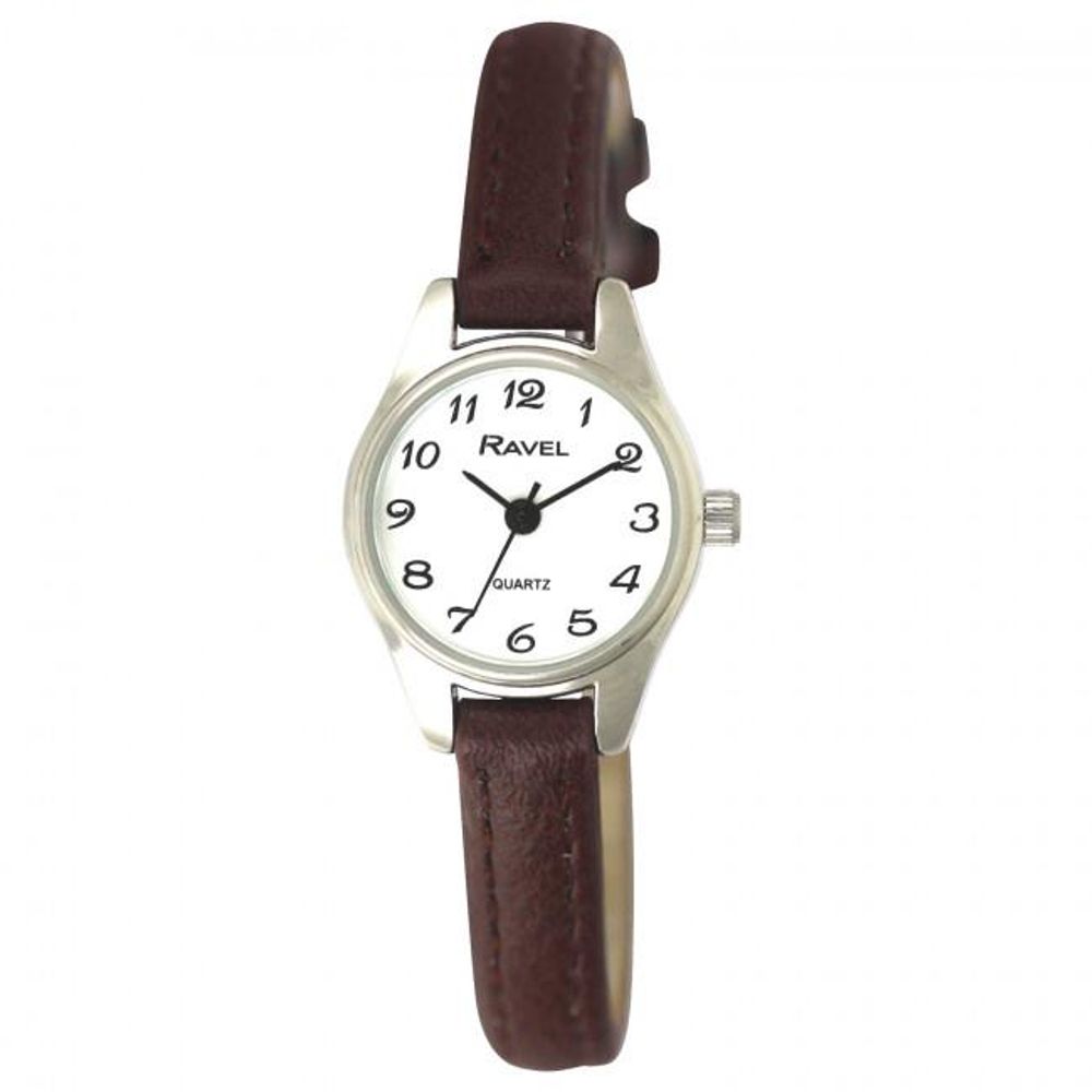 Ravel Ladies Polished Round Petite Gilt Case Brown Strap Watch R0124.14.2