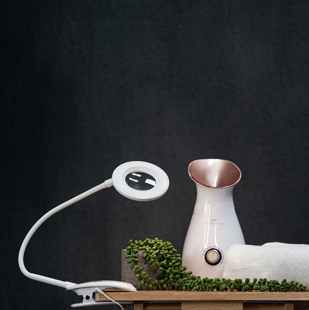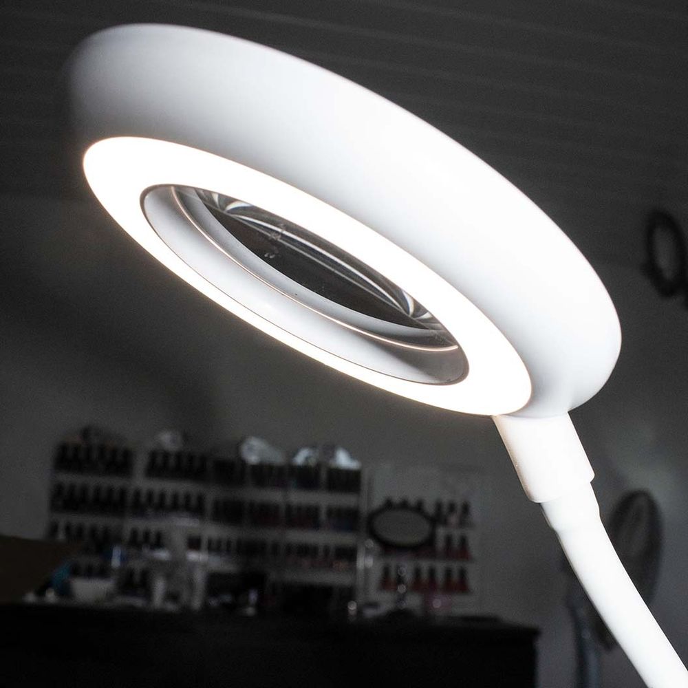 Rechargeable Clip-on Magnifier with Flexible Gooseneck and Daylight LED Light - Ideal for Beauty, Bed, Nail Tables - 1.3X Magnification