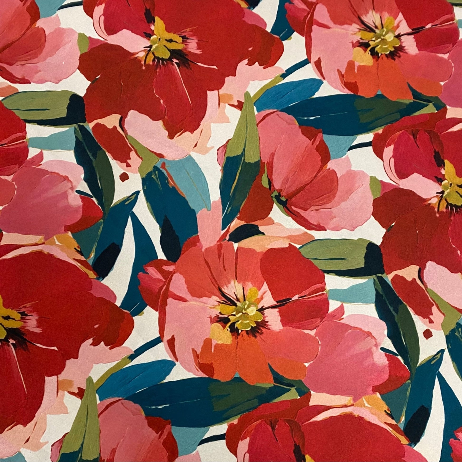 Red Floral Fabric – Available in Satin, Crepe, Spandex & Chiffon | By Metre