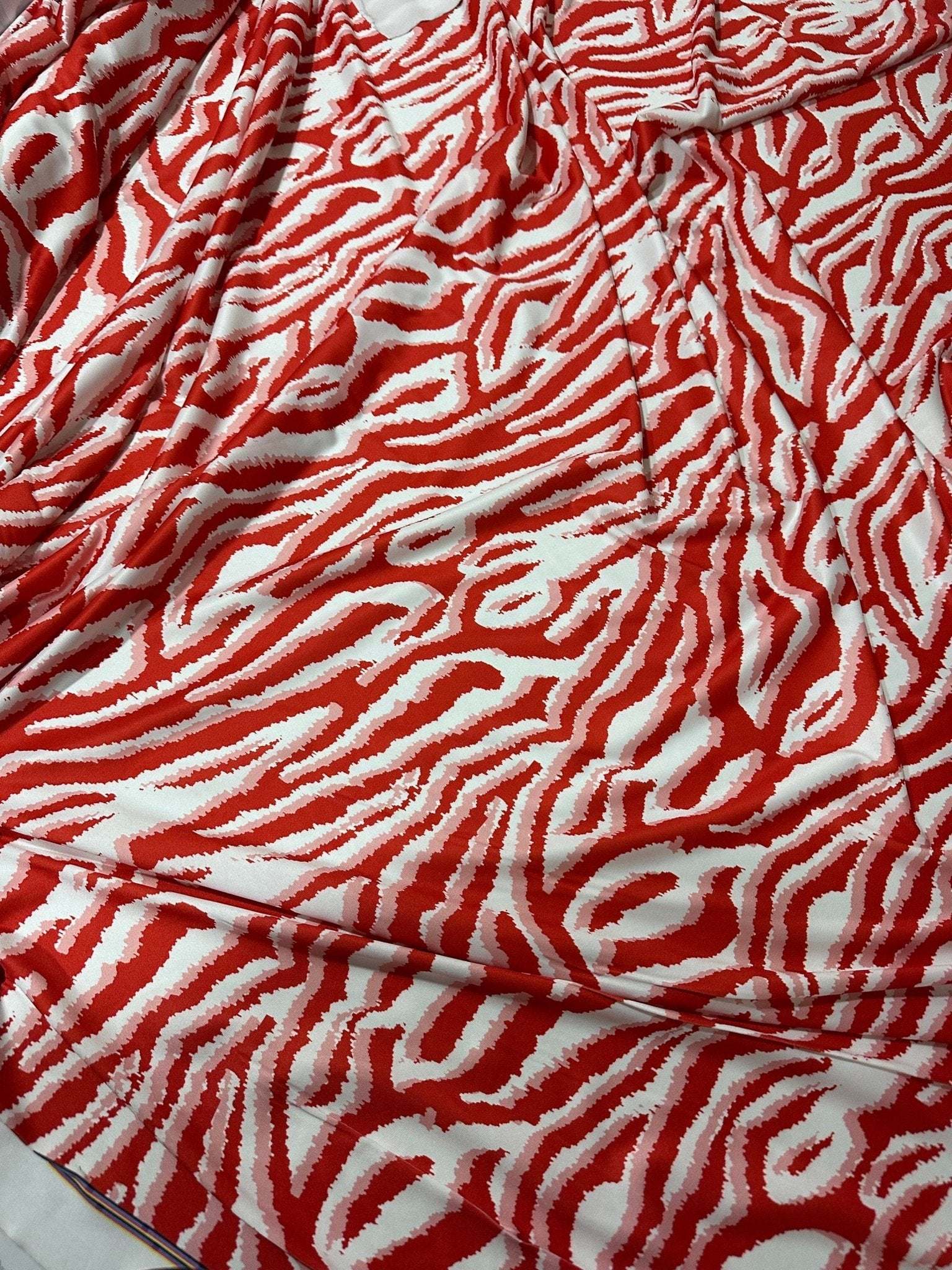 Red Tiger Pattern Fabric with Bold Red and White Stripes – Fabric by Metre, Multiple Options for Sewing & Dressmaking