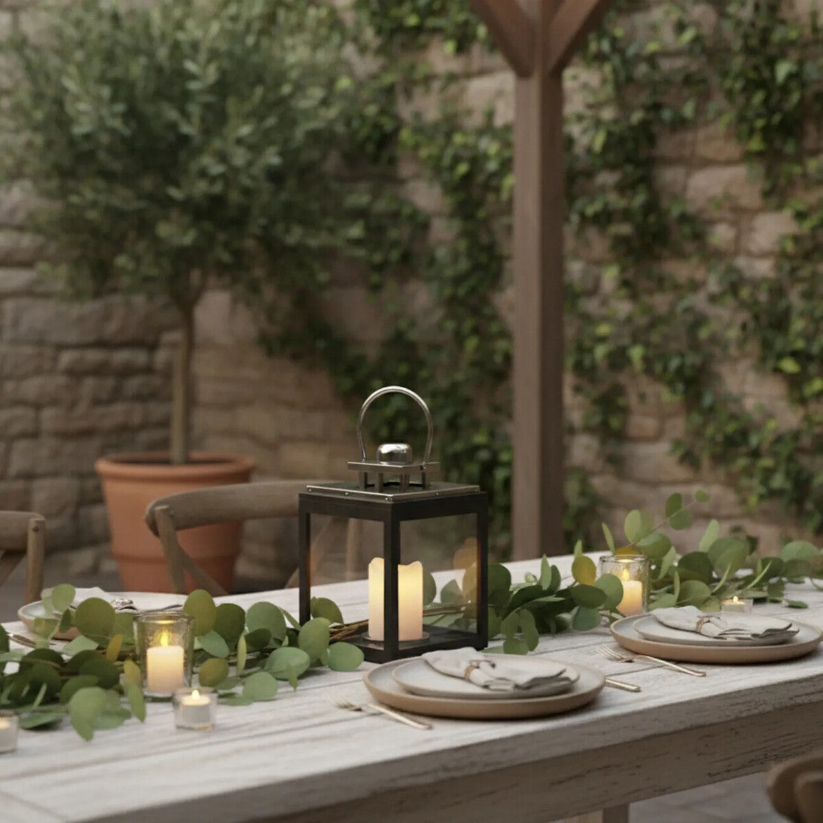 - Place on a balcony bistro table for date nights at home.