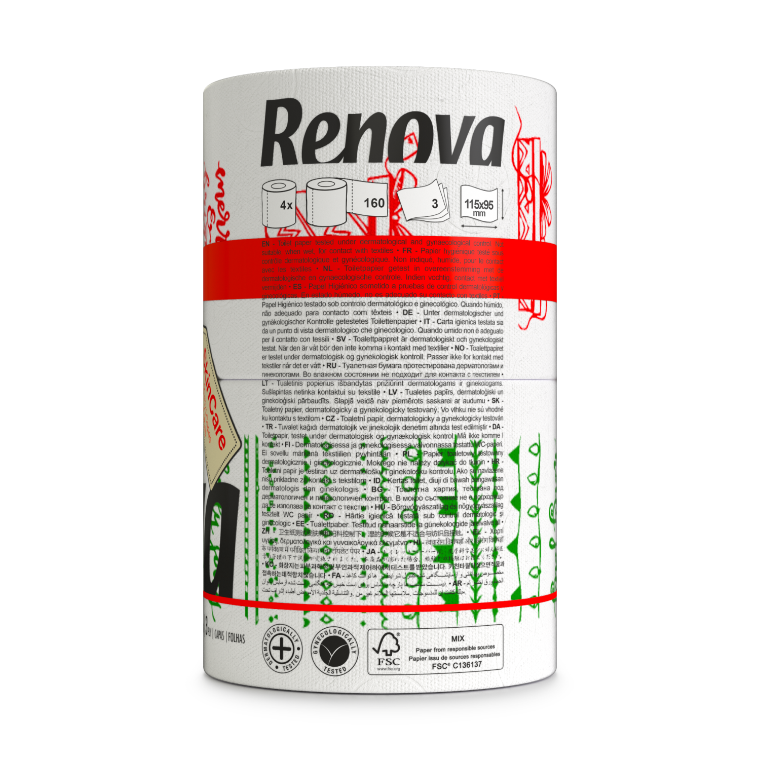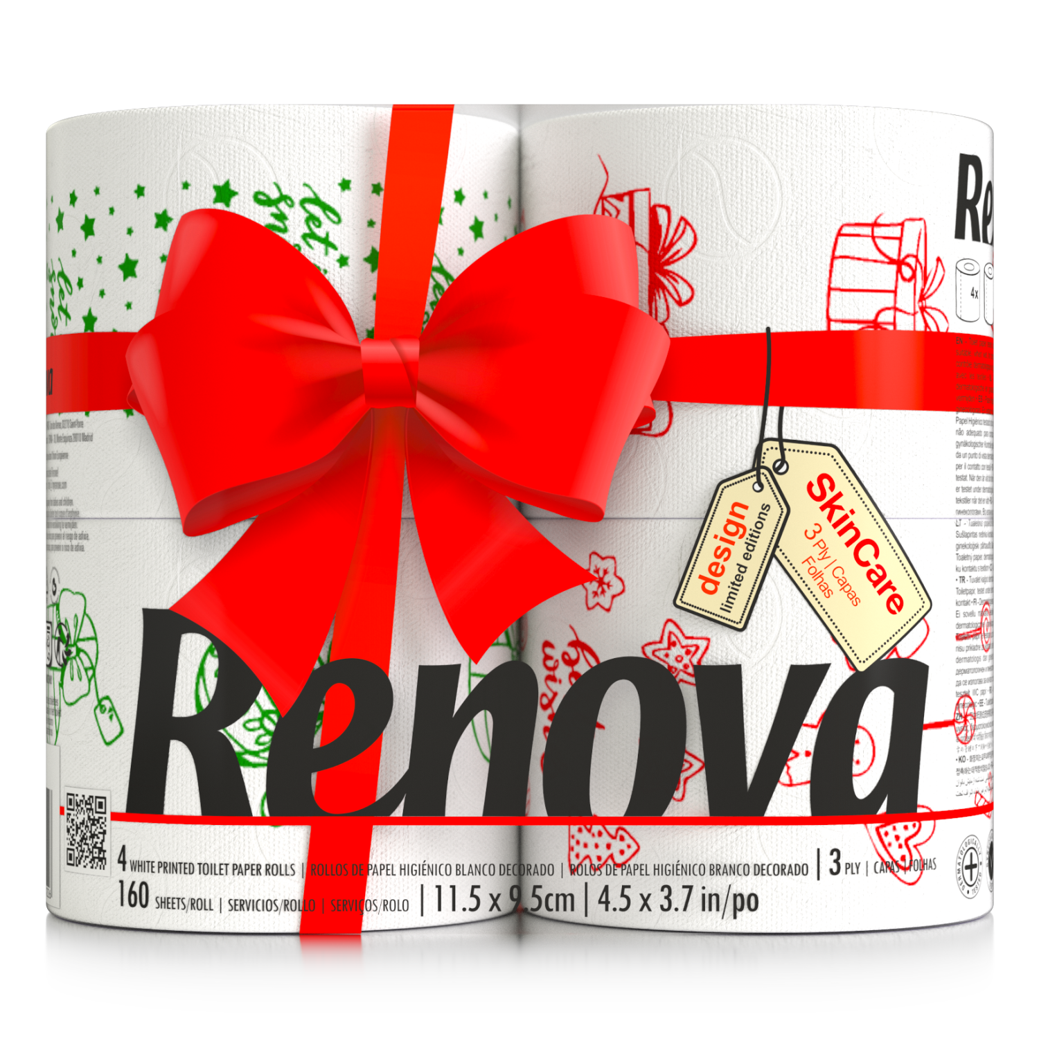 Renova Festive Christmas Toilet Rolls – Soft & Absorbent Holiday Tissue with Unique Illustrations | 4-Pack | 160 Sheets Per Roll