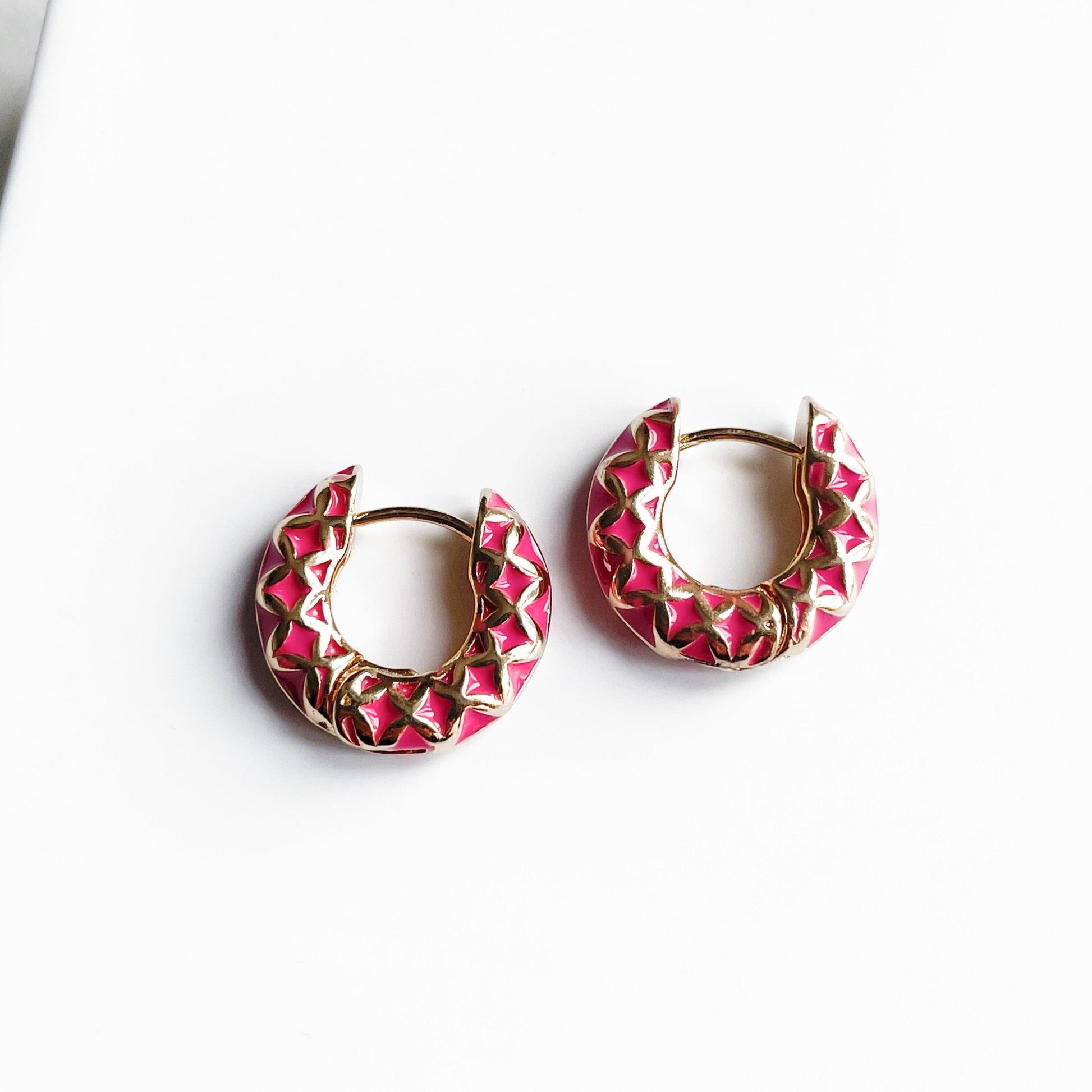 Add an elegant touch to your summer wardrobe with the Rhea Cerise Enamel Hoops. Brilliantly crafted from enamel. Dress up any outfit and enjoy effortless sophistication.