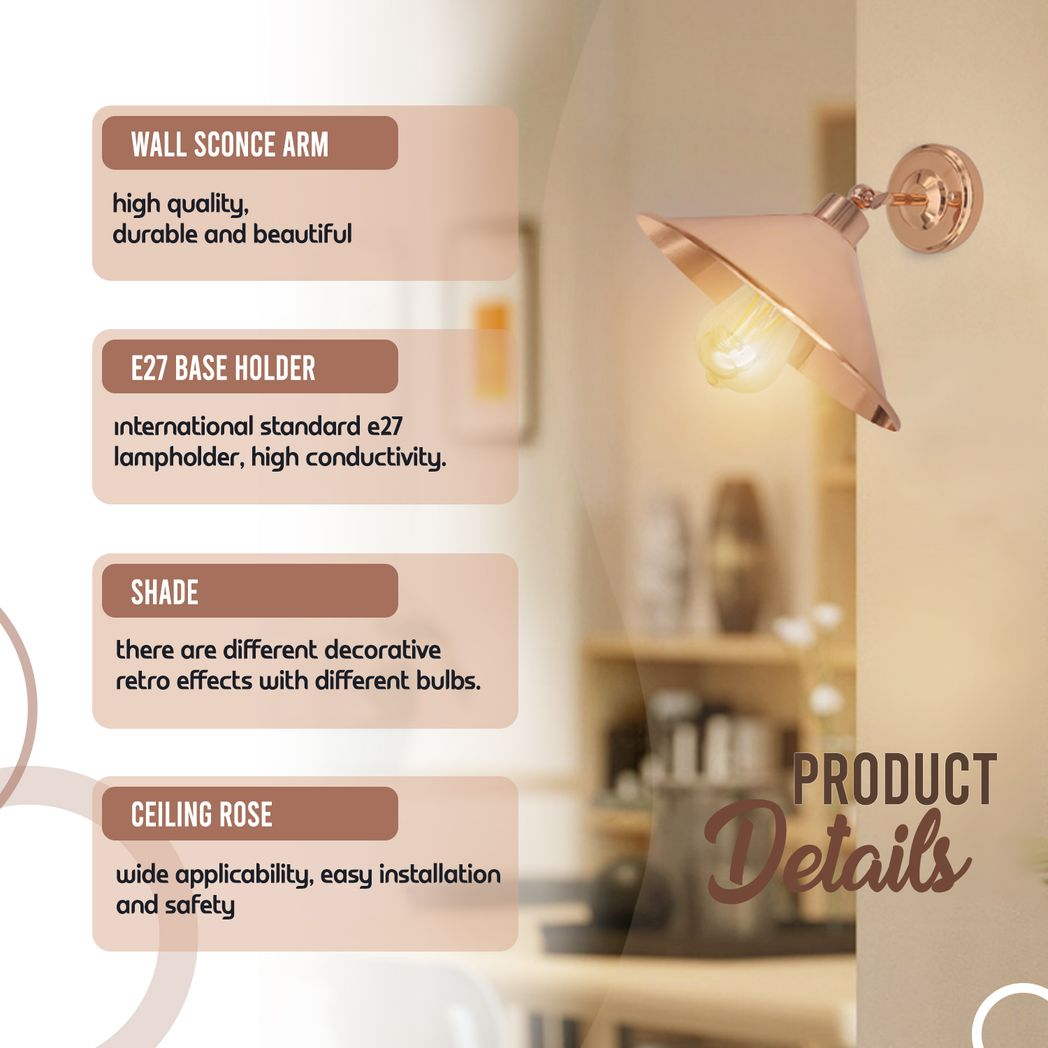 Rose Gold Retro Wall light Sturdy Metal Lamp Finish E27 lamp