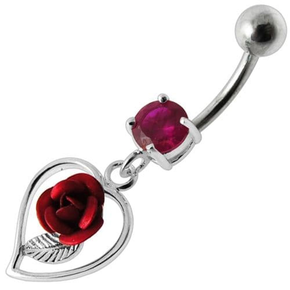 Rose in Heart Jeweled Dangling Belly Ring