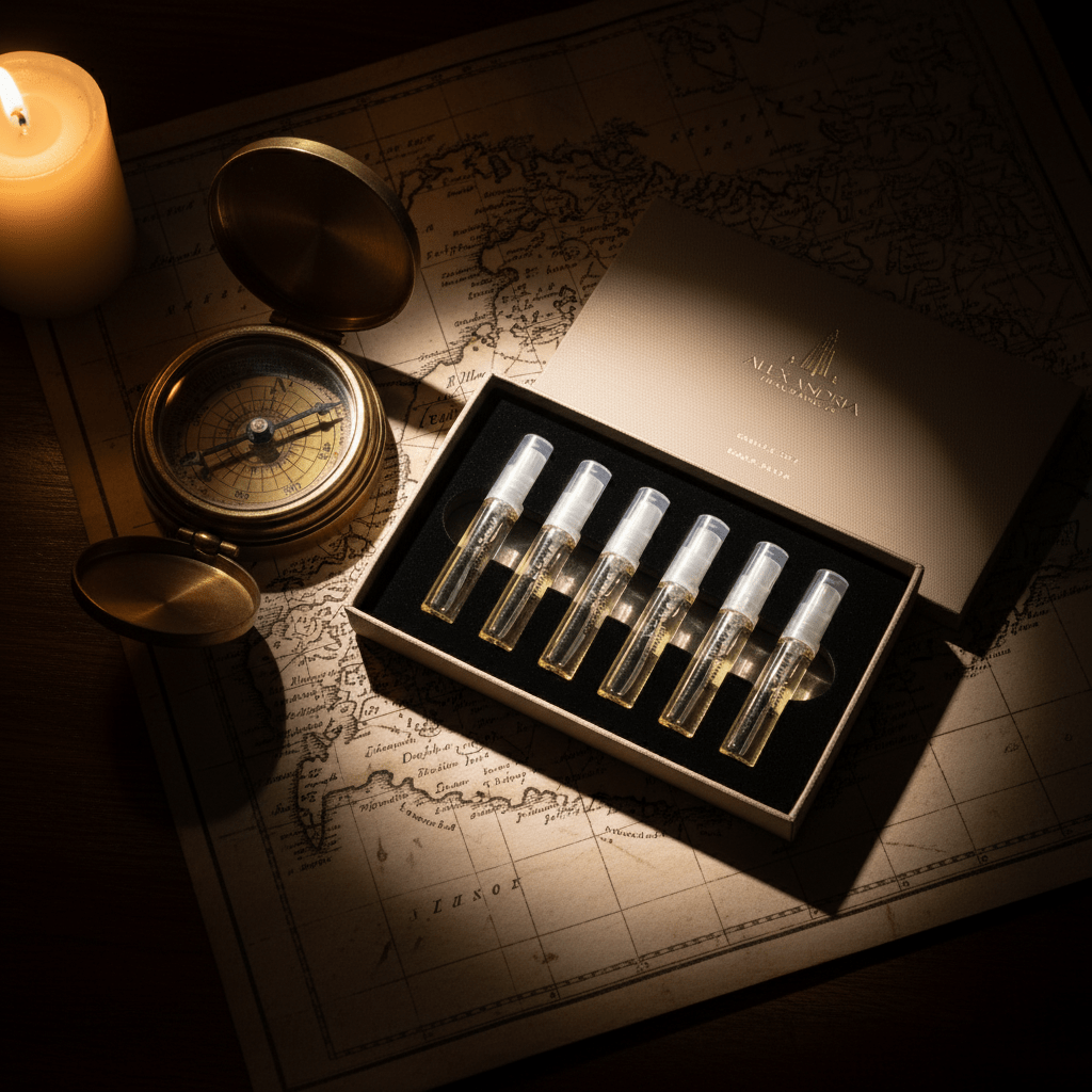 Six (6) × 5 ml atomisers—pre-filled with your choice of Alexandria scents or curated best-sellers. Each spray delivers the same extrait-strength formula as our full-size bottles.