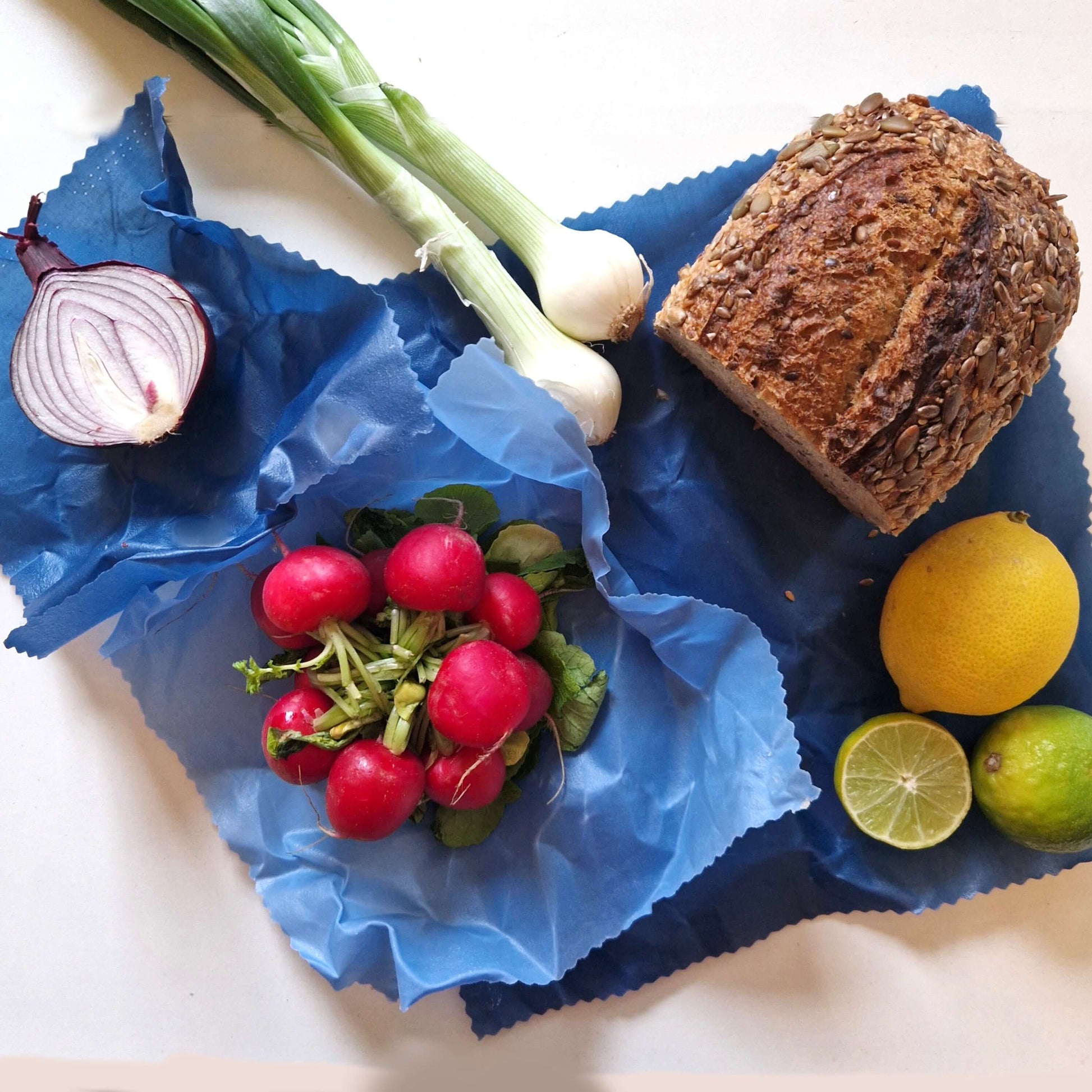 1 Large, 1 Medium, 1 Small beeswax food wrap in the patterns pictured