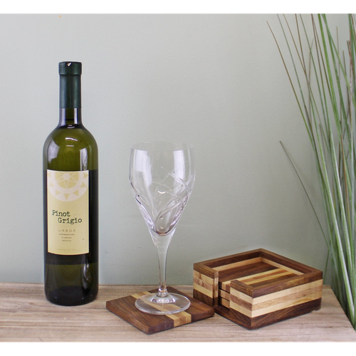Set of 4 Wooden Coasters With Holder