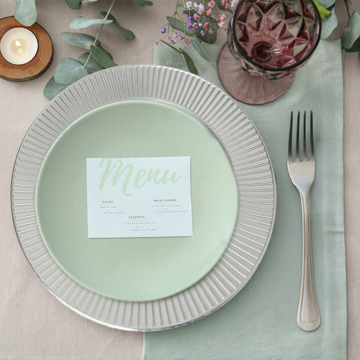 Pair with crisp white porcelain for a bright, elevated contrast, or style with grey stoneware for a sleek, contemporary finish. Add clear glassware, neutral linens, and simple greenery to achieve minimal luxury dining decor that feels calm and premium. These chargers also work beautifully with black cutlery for a more modern, editorial tablescape.