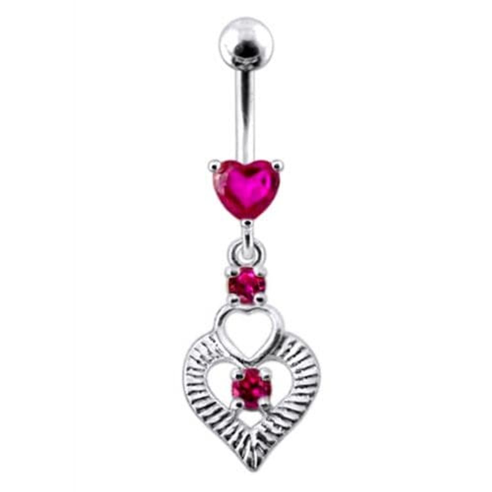 Silver Fancy Heart Jeweled Heart Dangling Banana Belly Ring