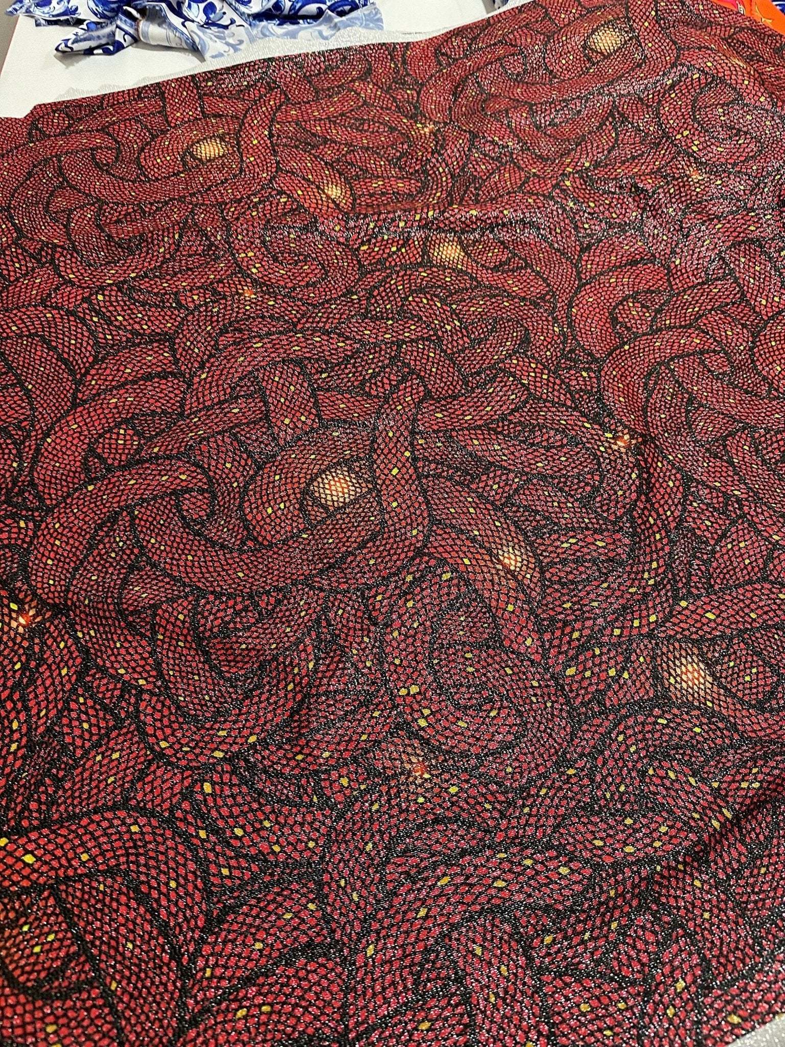 The Snake Skin Lurex Fabric is a premium snake skin lurex fabric designed to add shimmering style and exceptional flexibility to your creative projects. This luxury stretch fabric measures 150 cm wide and features a unique animal print textile woven with glitter lurex fabric, making it the perfect choice for fabric for activewear, fabric for swimwear, and fabric for dancewear. Crafted as a metallic knit material, it combines durability with a silky feel that supports comfort and performance. Tested for quality and backed by Whotex Online Fabric Store’s commitment to excellence, this stretchy snake pattern material maintains its shape and vibrant shine even after repeated wear.