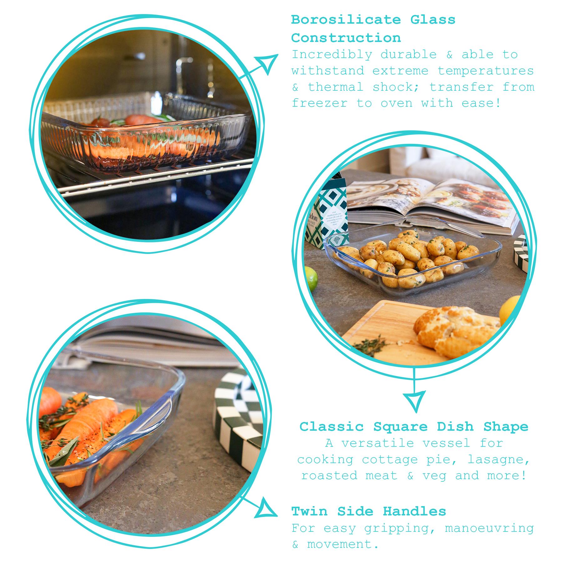 Made from borosilicate glass, this dish boasts exceptional resistance to both extreme temperatures and thermal shock, allowing you to transfer from the fridge or freezer to the oven or microwave with ease. The BPA-free material ensures no nasties, while a scratch and stain-resistant finish means your dish will stay looking clean and pristine for years to come.