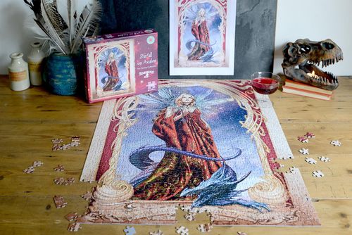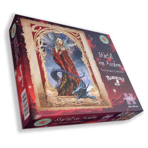 Explore a magical, mystery realm with Starfall on Avalon 1000 Piece Jigsaw Puzzle from Alchemy Here stands an enchanting Fairy dressed in red and golden robes, she can be seen gazing in to the galaxy with a dragon upon her feet protecting her. Get lost in another realm as you create this star filled wonder from Alchemy. Key Features: 1000 Pieces of mystical fun! Measures 50 x 66 cm when complete Part of the Alchemy Range The perfect gift for Fantasy Lovers!