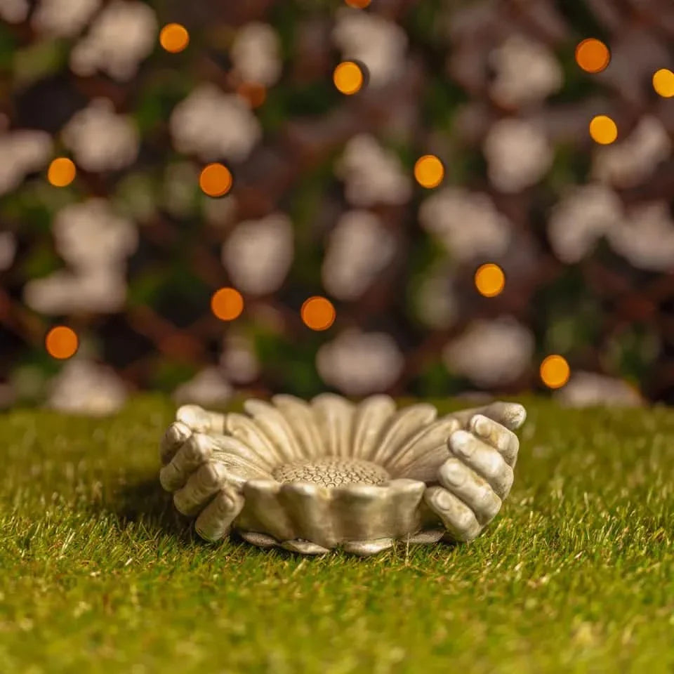 Stone Effect Sunflower Ornament Garden Bird Water Feeder Bath Decor Hands