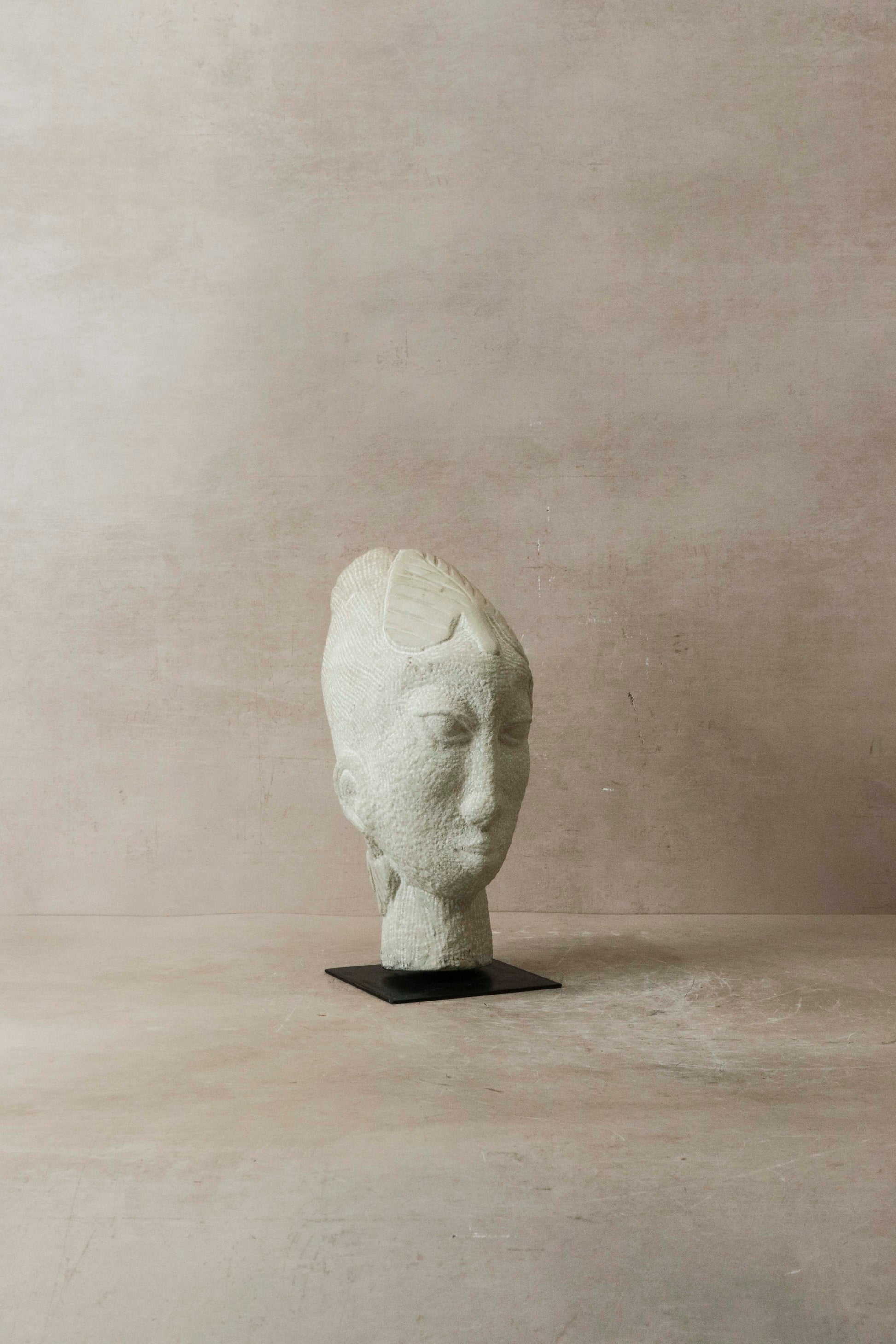 Rizimu Chiwawa carved head solid stone sculpture is created with great passion and precision. The artist won the Outstanding Mixed Media Award at the National Merit Awards in Zimbabwe 2014 for his unique work. He uses a hammer and chisel and with a great precision he creates the most intricate and detailed sculptures.