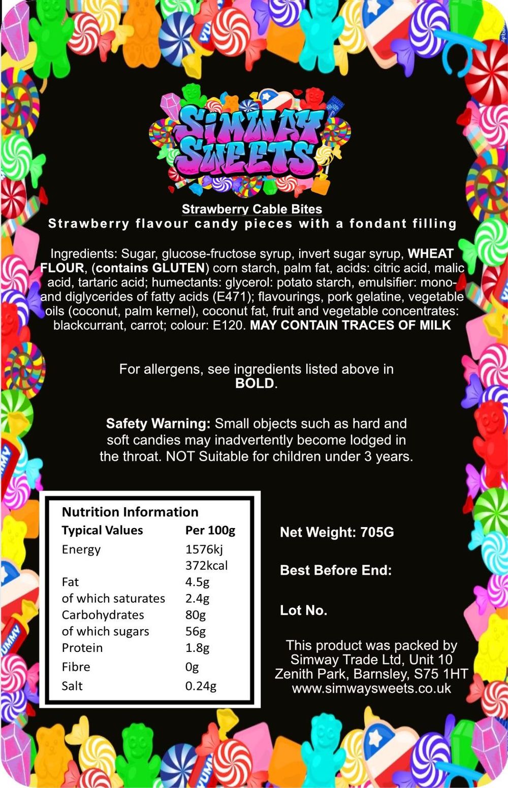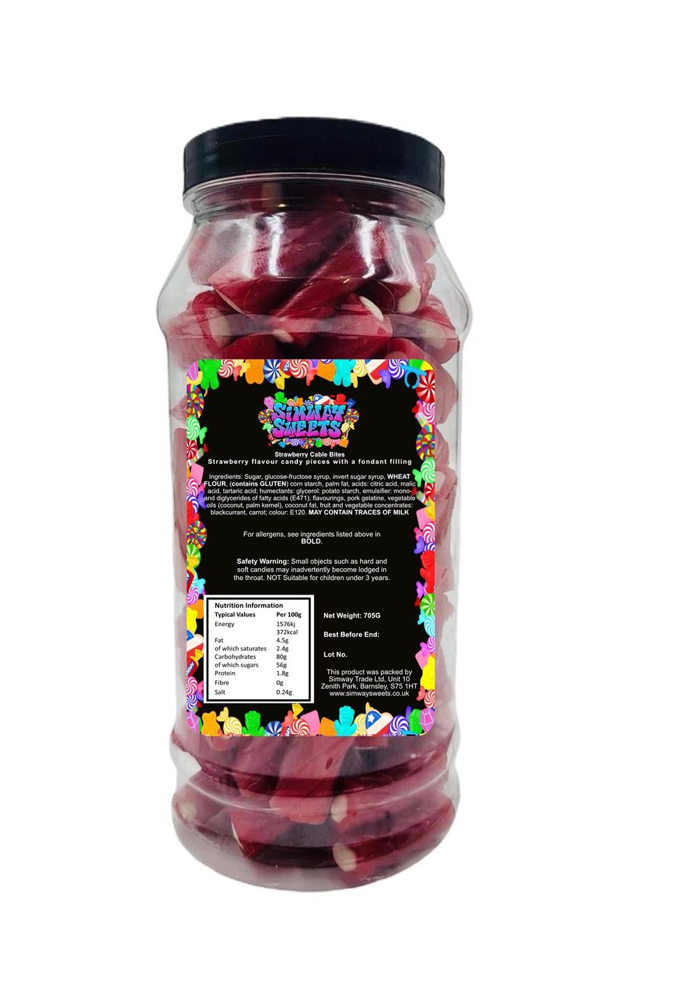 Strawberry Twist Cable Bites Pencil Bites Retro Sweets Gift Jar