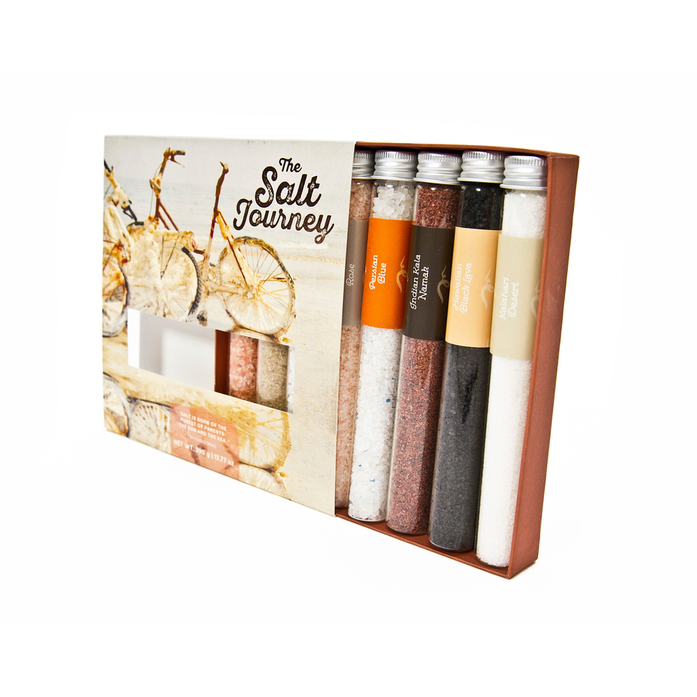 - Salts that offer a diversity in texture, colour and mineral content and the gift tray is beautifully designed in a slide gift tray with foiled detail.