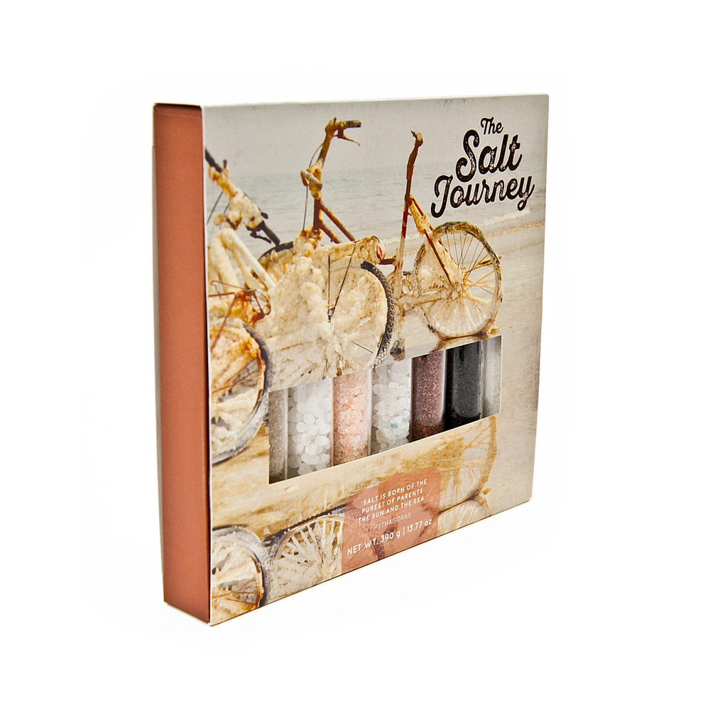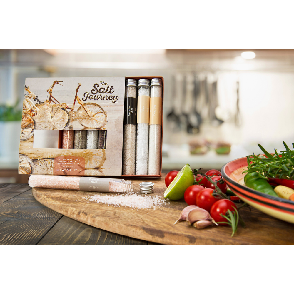 Explore the natural sources of each salt, from salt pans to underground brine lakes, with recipe ideas printed on the box. These suggestions provide simple food pairings to ensure the best results and set you on a delightful culinary journey. Enjoy!