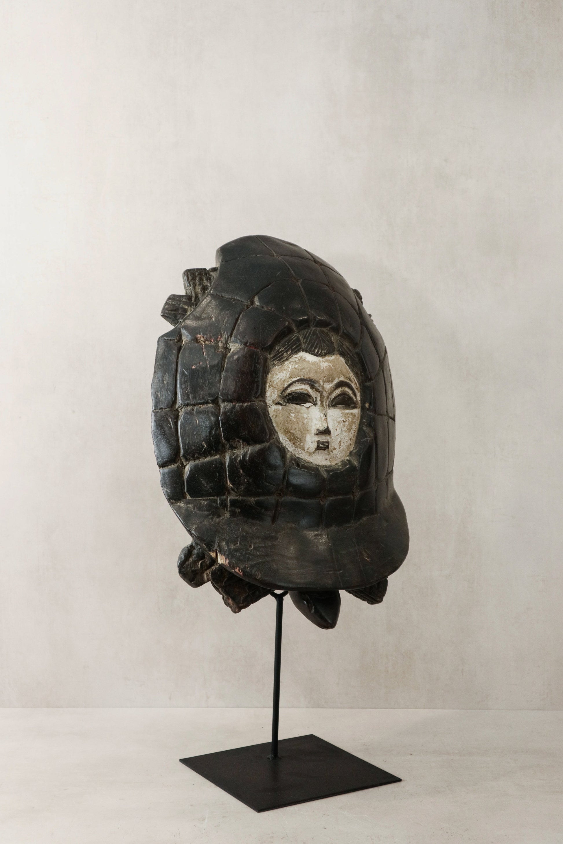 Handcrafted by skilled artisans, this mask pays homage to the revered tortoise, a symbol of wisdom, longevity, and protection in many African traditions.