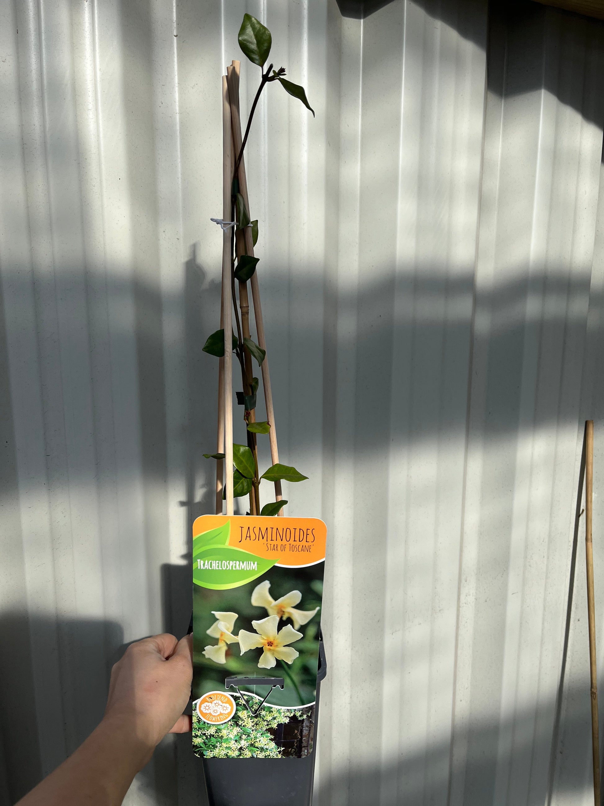 Star Jasmine is a sweetly scented, evergreen climber. It bears hundreds of butter yellow, star - shaped flowers throughout the summer.