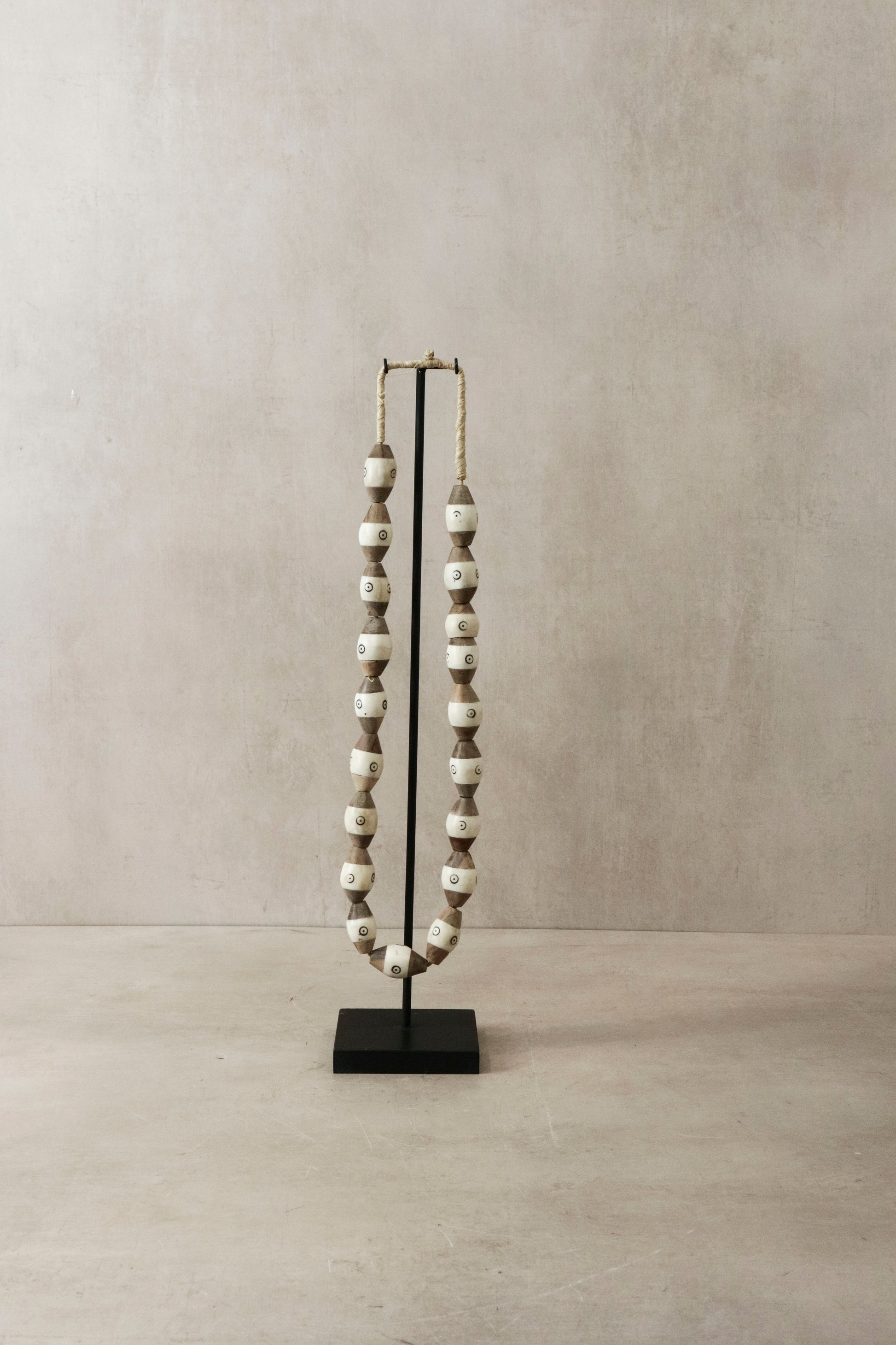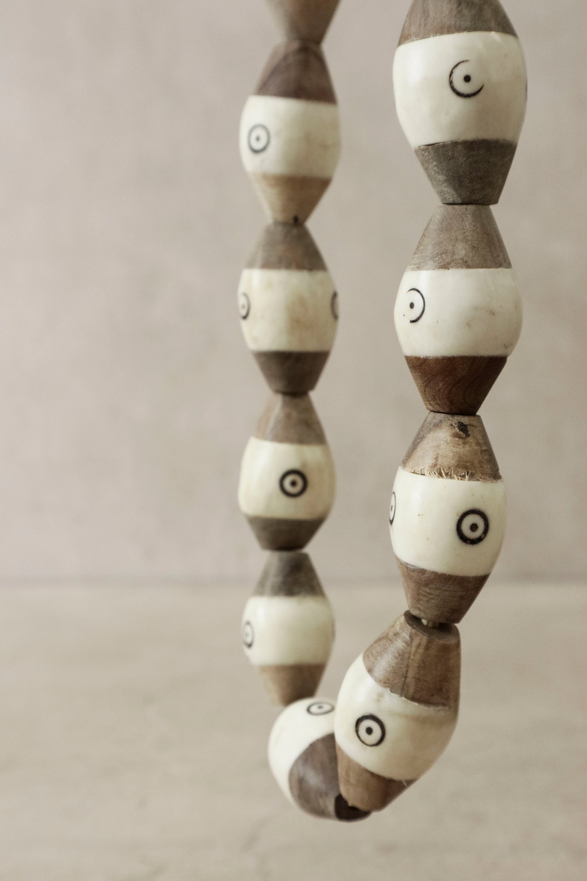 Handmade Turkana trade bead necklace whose beads are made using wood and and bones.