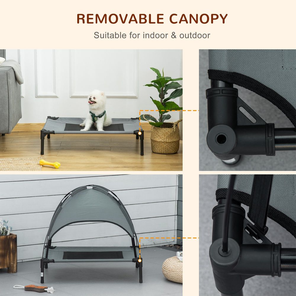 Ultimate 76cm Elevated Dog Bed - Cooling Raised Pet Cot with UV Protection Canopy - Grey Pawhut