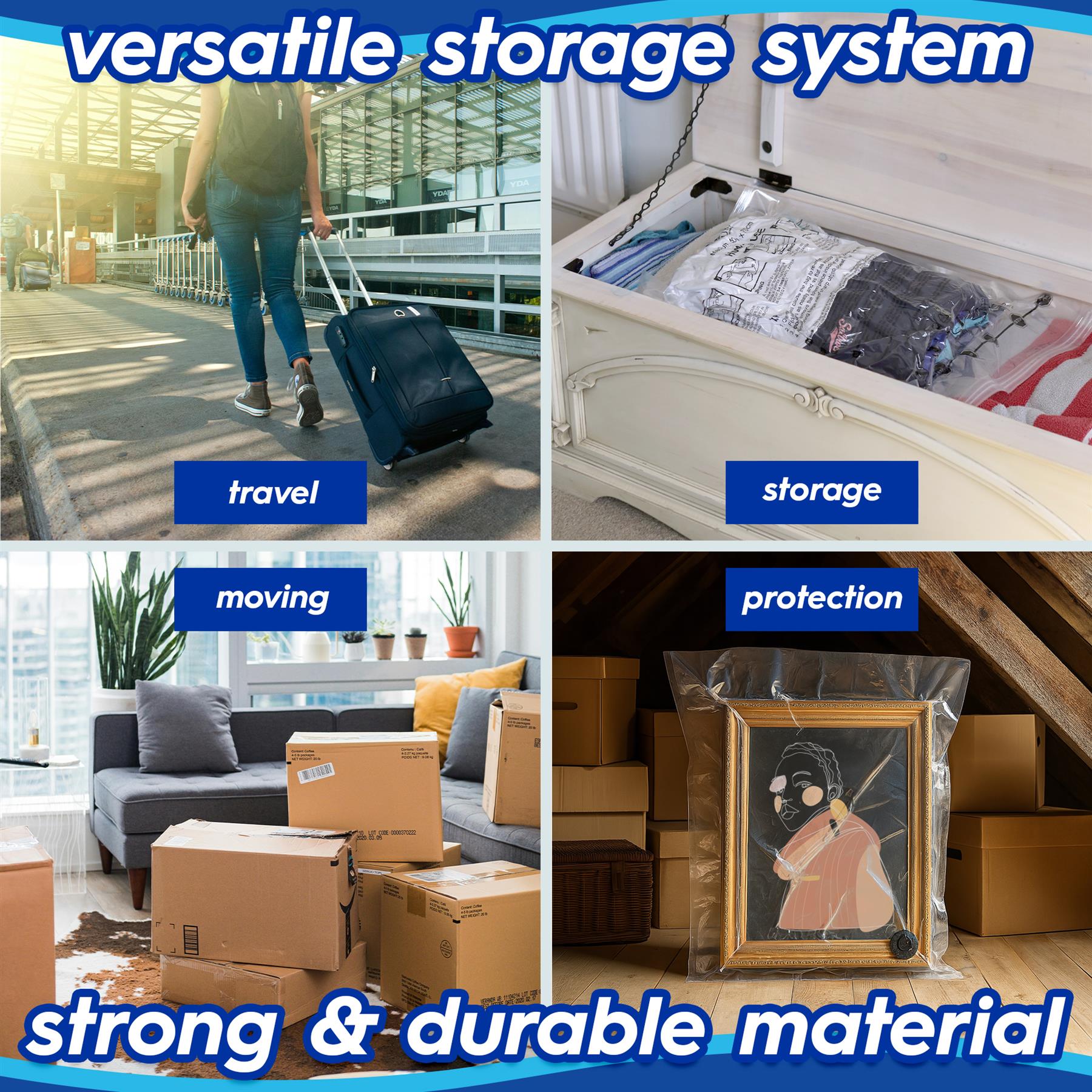 Available in 3 different colour-coded sizes, our Vacuum Storage Bags make it easy to keep different types of content organised and easily identifiable should you need to access them again.