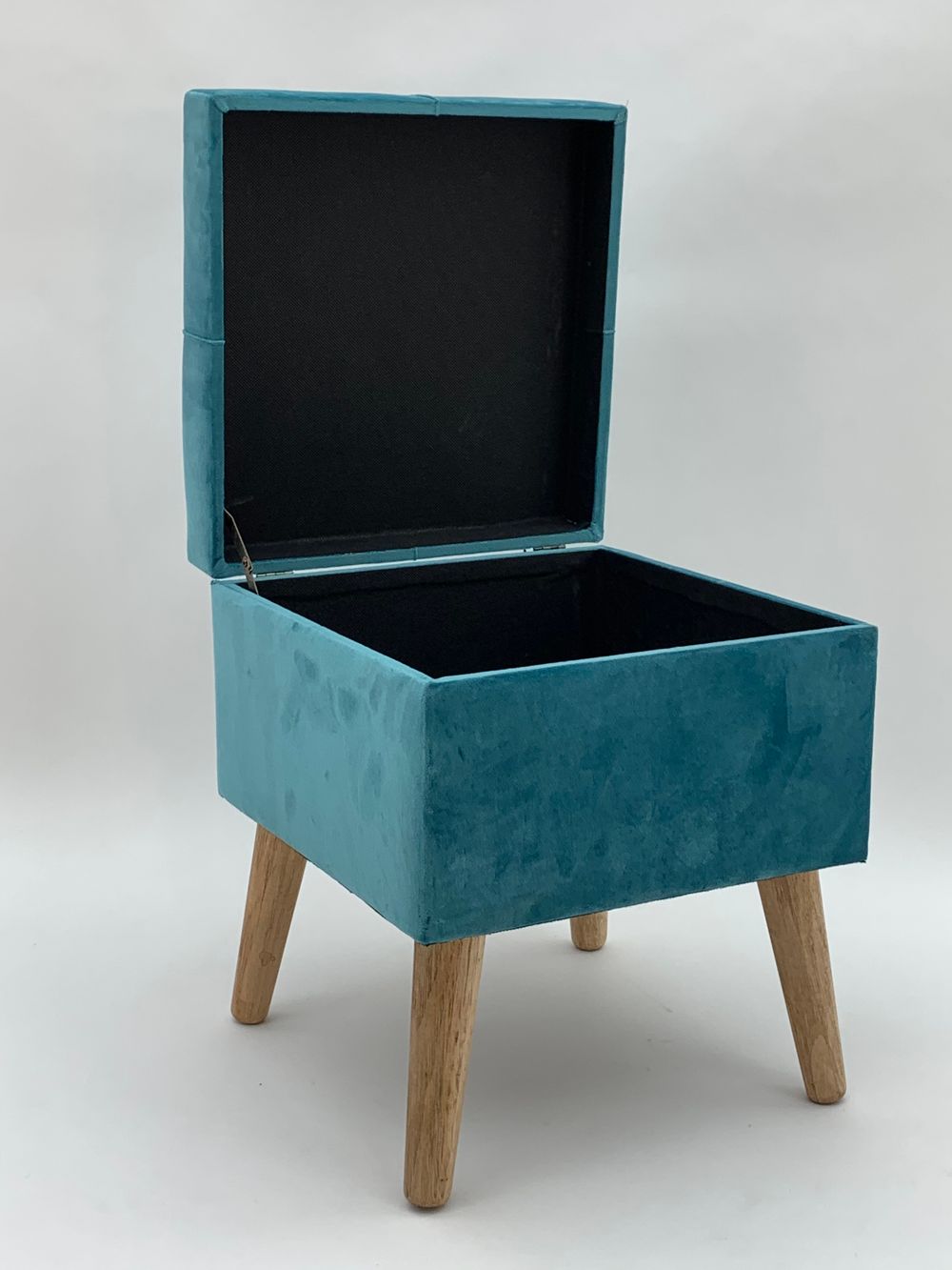 Velvet Footrest Trunk - Blue | Storage Compartment, Wooden Legs