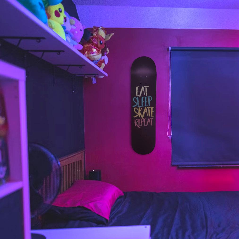 Each pack contains 1 x Black Skateboard Deck, 1 x Wall Hanger, and comes with a pack of coloured chalk.