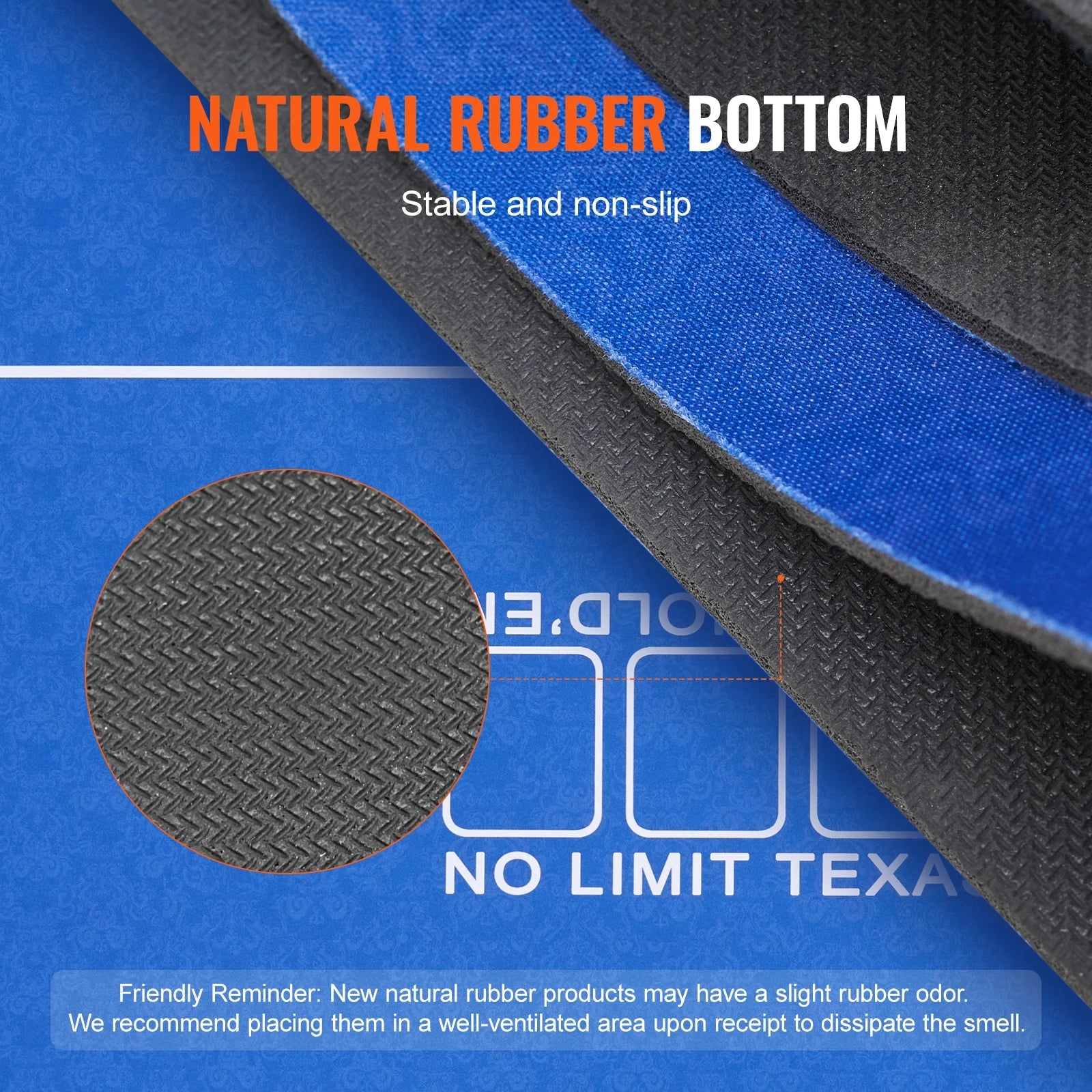 - 6-8 Players Play Together: 70" x 35" / 180 x 90 cm. This large poker layout instantly transforms any table into a professional poker gaming table. Its spacious size accommodates multiple players, making it suitable for various settings including home, outdoor, and poker room, allowing you to immerse yourself in endless competitive fun!