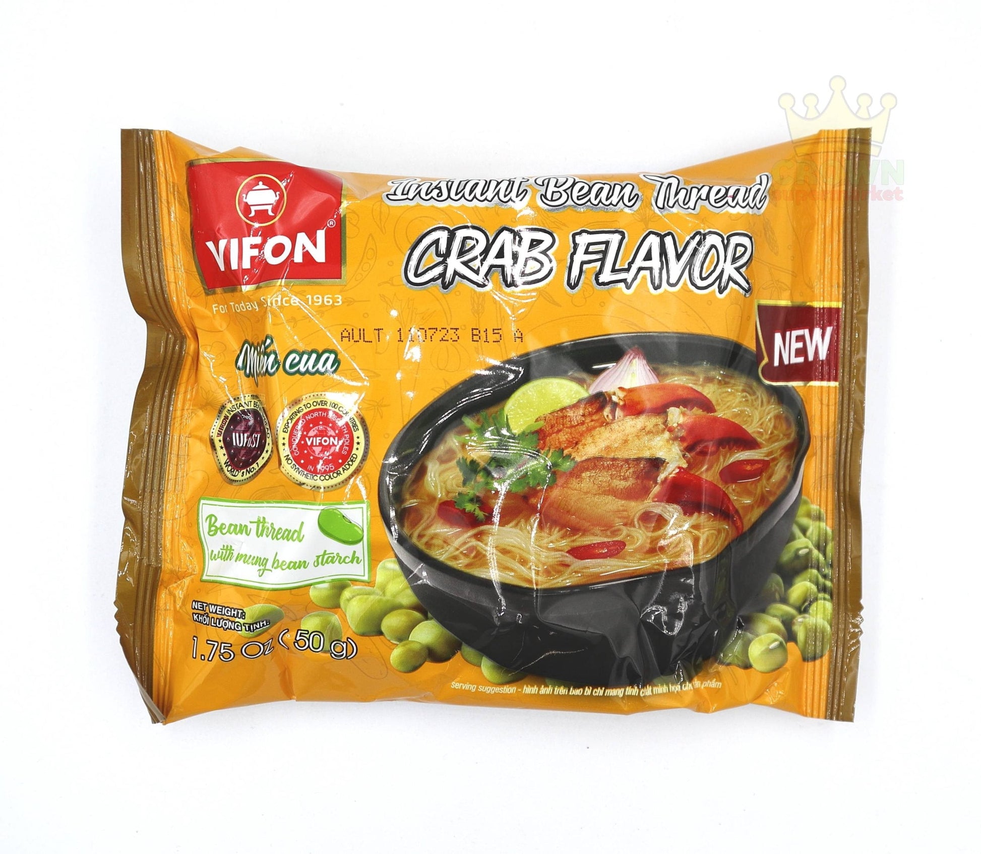 Introducing VIFON Instant Bean Thread with Artificial Crab Flavour! Made with premium ingredients, this 50g pack is perfect for a quick and tasty meal. With a delicious crab flavor, it's sure to satisfy your taste buds. Easy to prepare and packed with flavor, try it today!