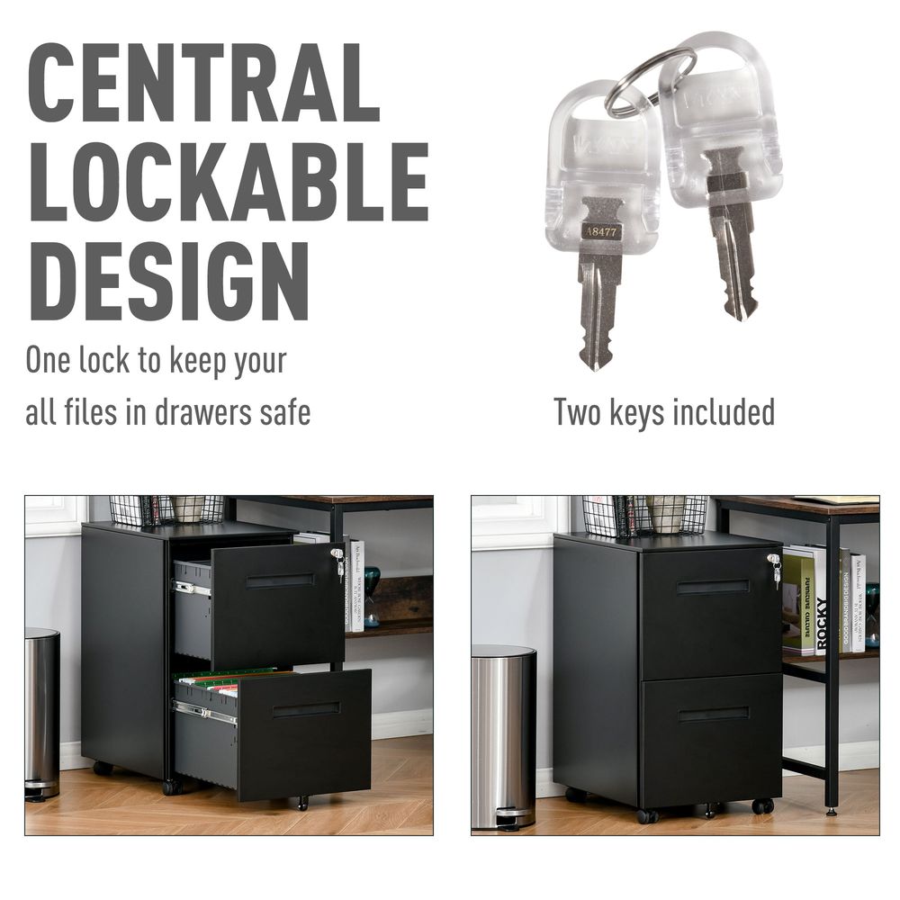 Vinsetto Mobile Steel File Cabinet, 2-Drawer Filing Cabinet, Vertical Lockable Home Office Organizer with Adjustable Partition for A4 Letter Size, Black