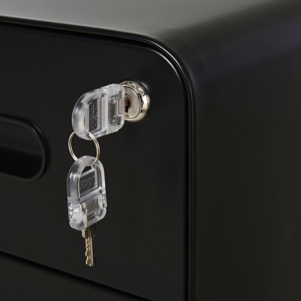 Vinsetto Modern Steel Filing Cabinet - 3 Draw, Lock & Wheels - Black - High-Quality