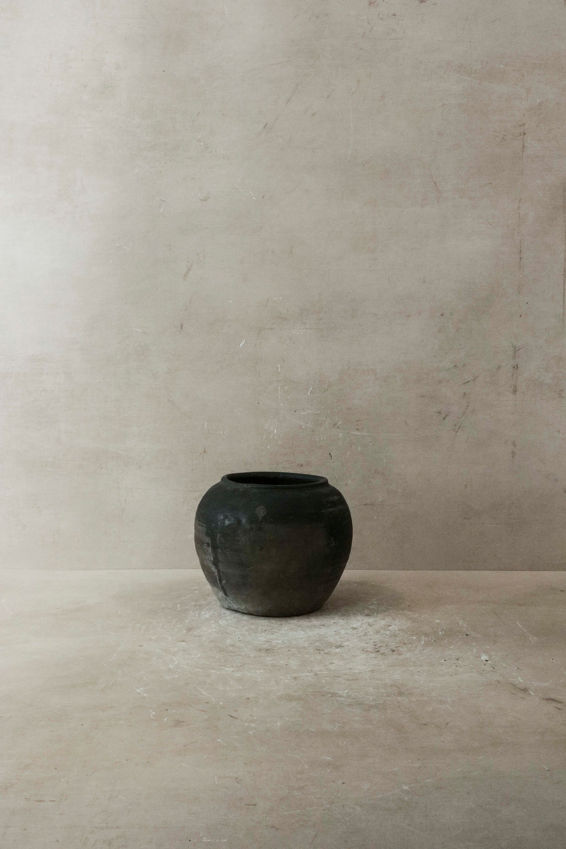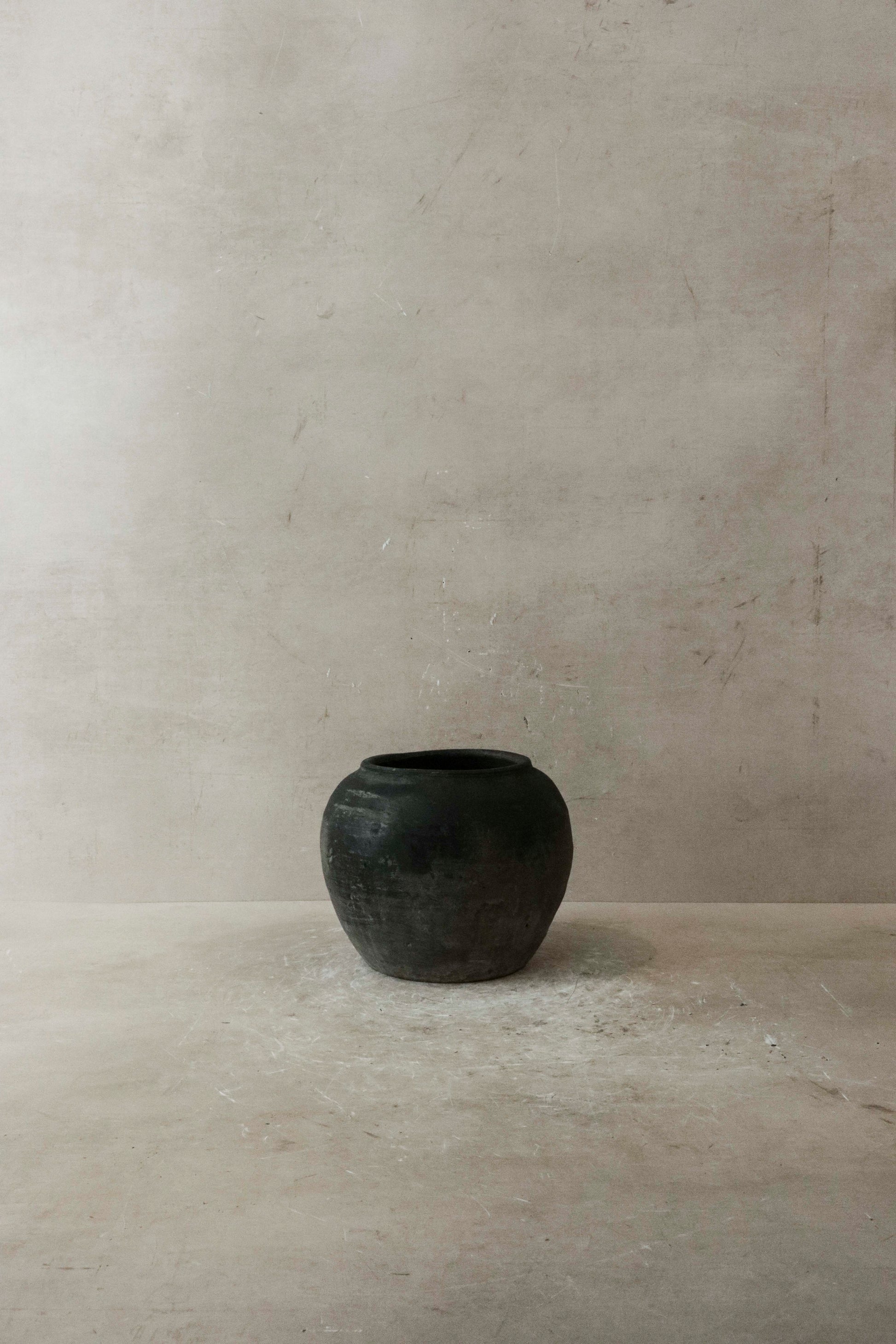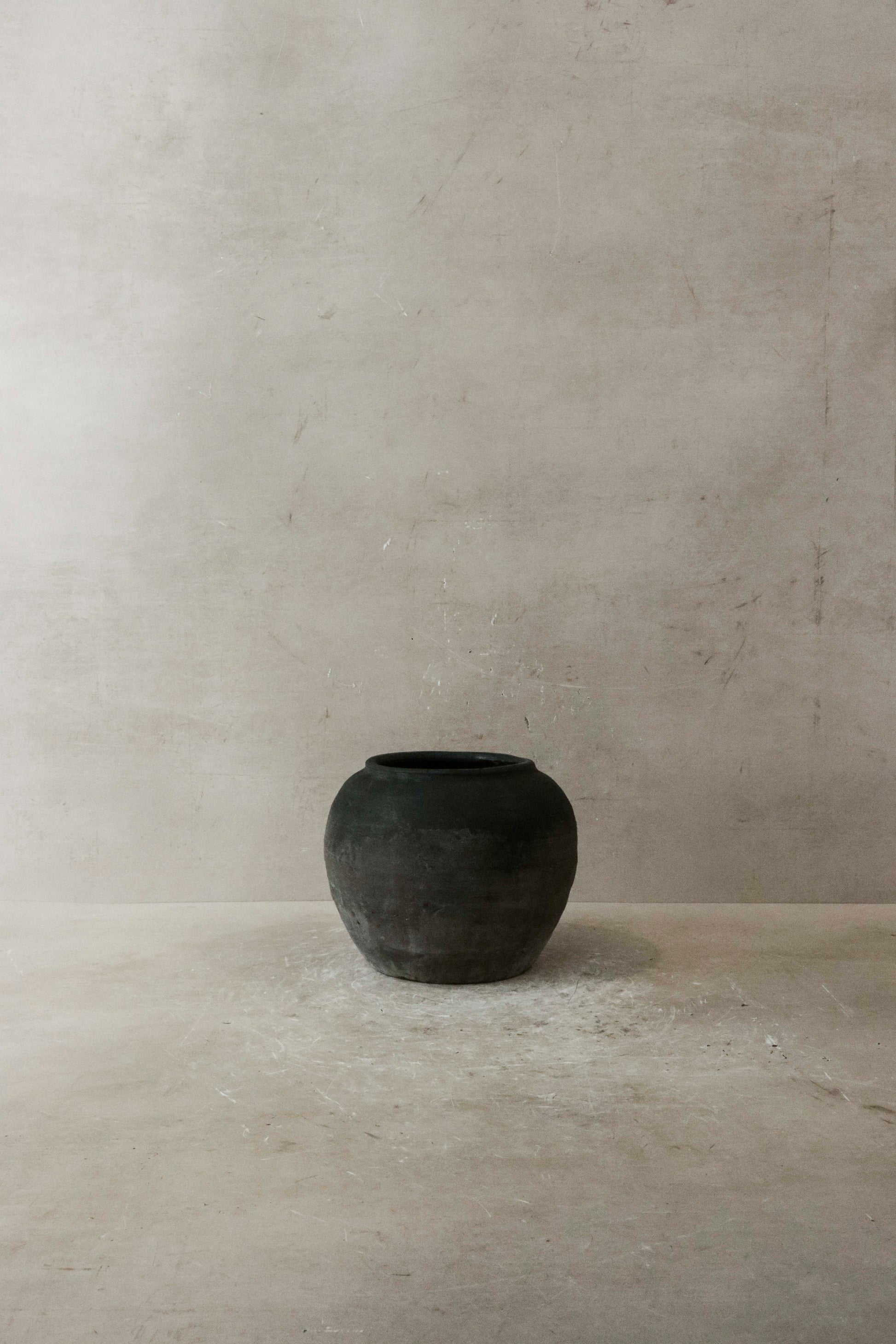 Add character and history to your space with the Vintage Dark Pot, a stunning piece of decor that combines rustic charm with lasting elegance. This unique, handcrafted pot boasts a rich history and timeless design, making it the perfect addition to any eco-conscious home. Whether used as a decorative accent or a planter, its vintage appeal and high-quality craftsmanship will elevate any room. The pots have a beautiful patina due to age and from the Shanxi province crafted c. 1950's.