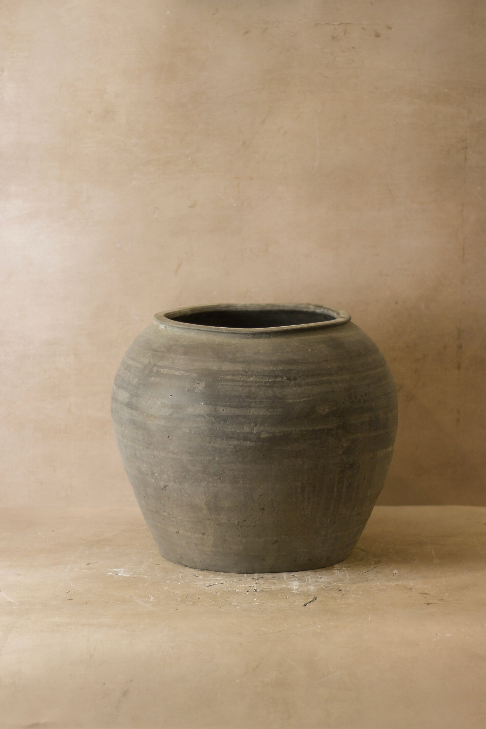Add character and history to your space with the Vintage Dark Pot, a stunning piece of decor that combines rustic charm with lasting elegance. This unique, handcrafted pot boasts a rich history and timeless design, making it the perfect addition to any eco-conscious home. Whether used as a decorative accent or a planter, its vintage appeal and high-quality craftsmanship will elevate any room. The pots have a beautiful patina due to age and from the Shanxi province crafted c. 1950's.
