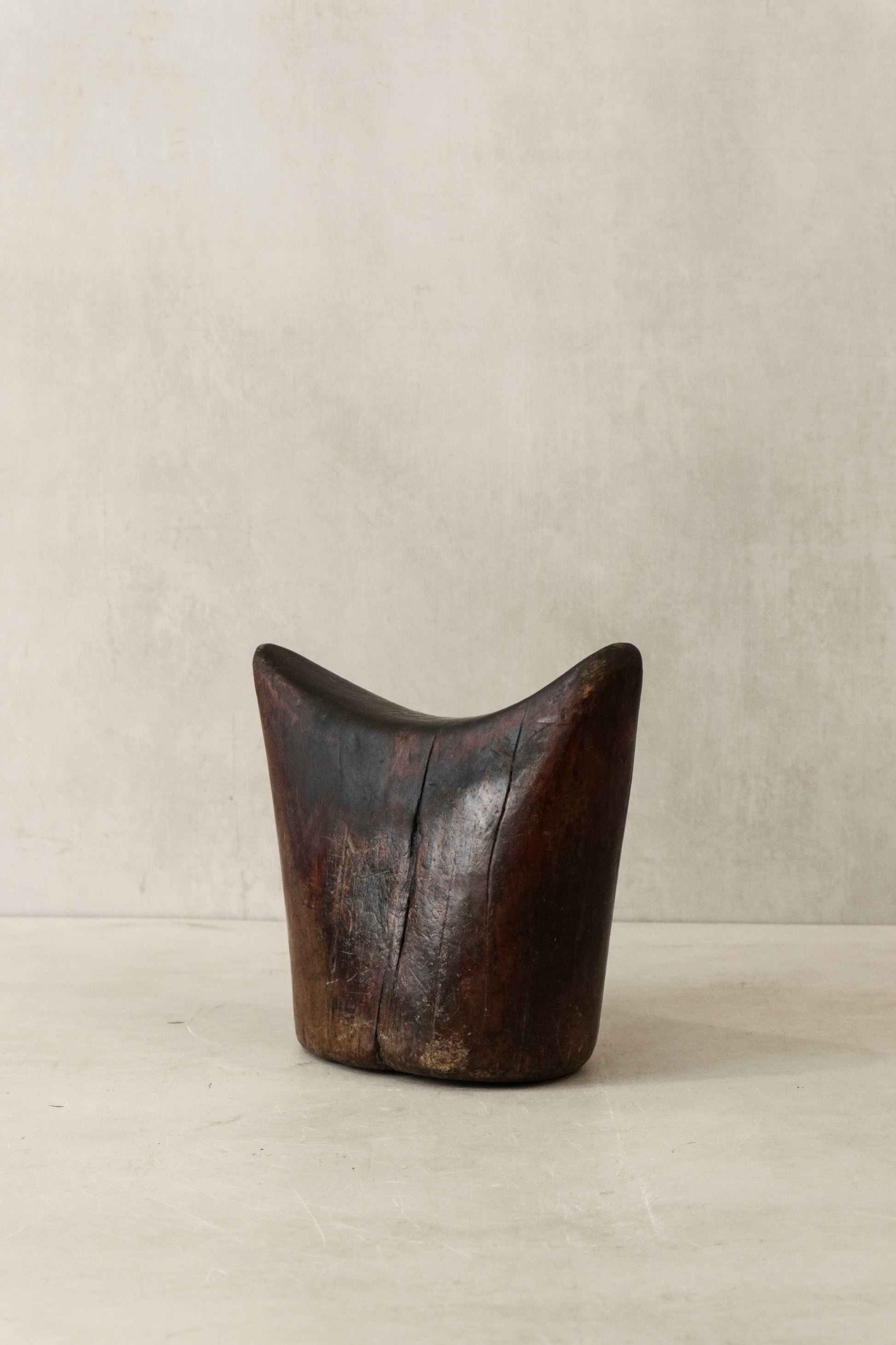 These solid wood Headrests are from groups in southern Ethiopia used to enable people to sleep without interfering with their complicated coiffure (hairstyles). Hairstyles frequently declare their owner's age, gender and status, and are often embellished by accoutrements of a magic-religious nature. Hairstyles therefore need protecting. The headrest also plays a role in nuptial ceremonies.