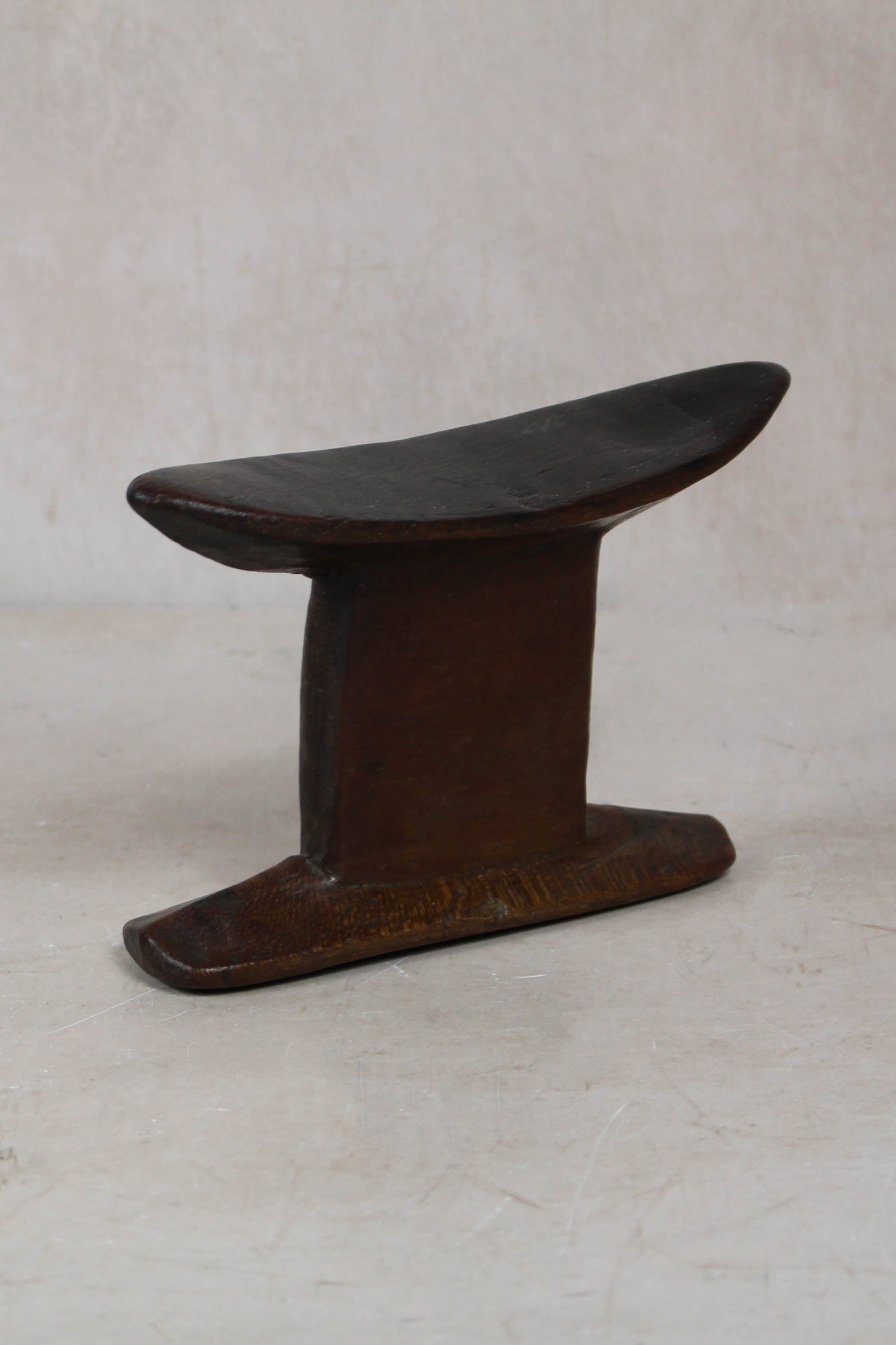 These solid wood Headrests are from groups in southern Ethiopia used to enable people to sleep without interfering with their complicated coiffure (hairstyles). Hairstyles frequently declare their owner's age, gender and status, and are often embellished by accoutrements of a magic-religious nature. Hairstyles therefore need protecting. The headrest also plays a role in nuptial ceremonies.
