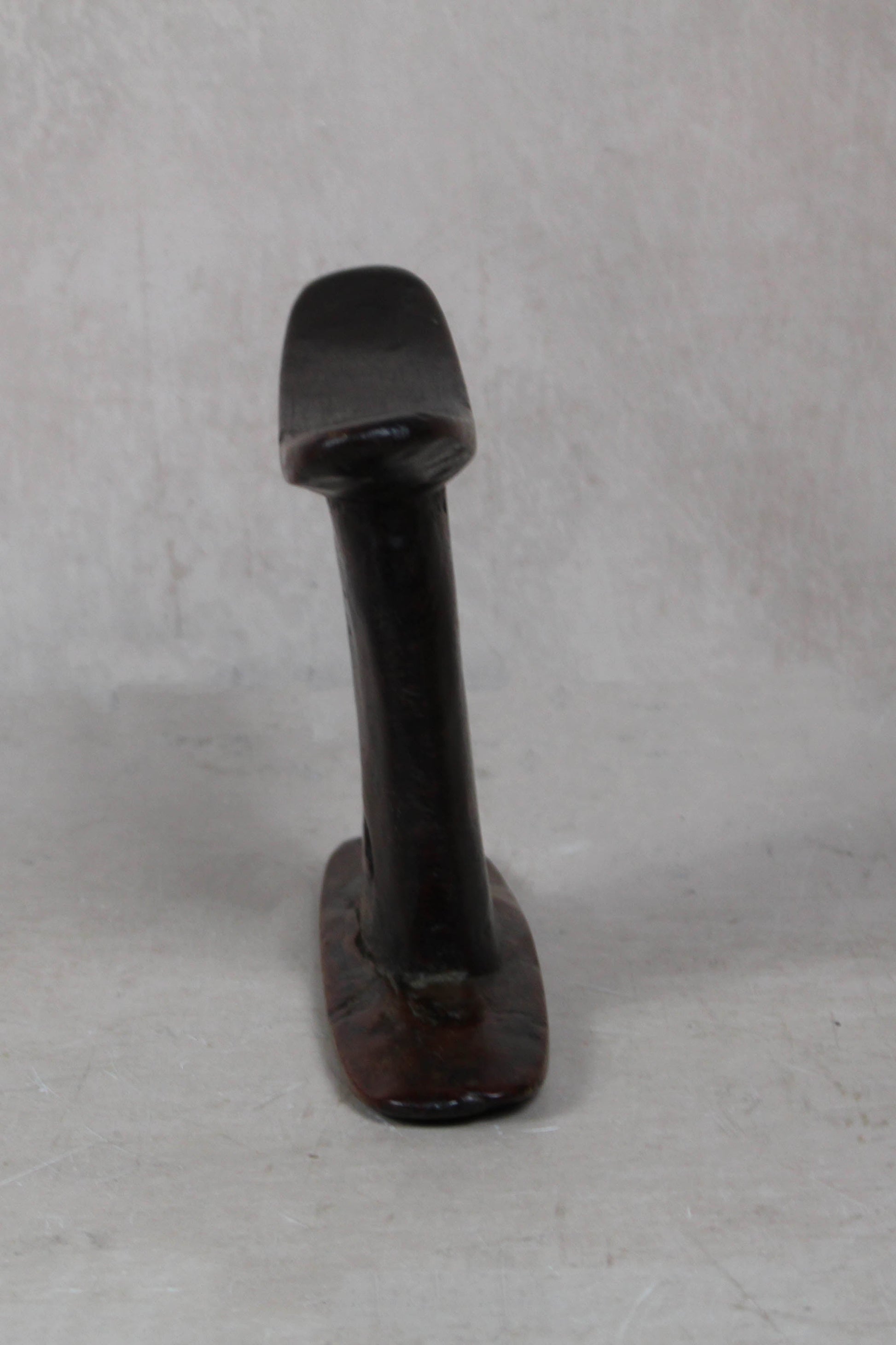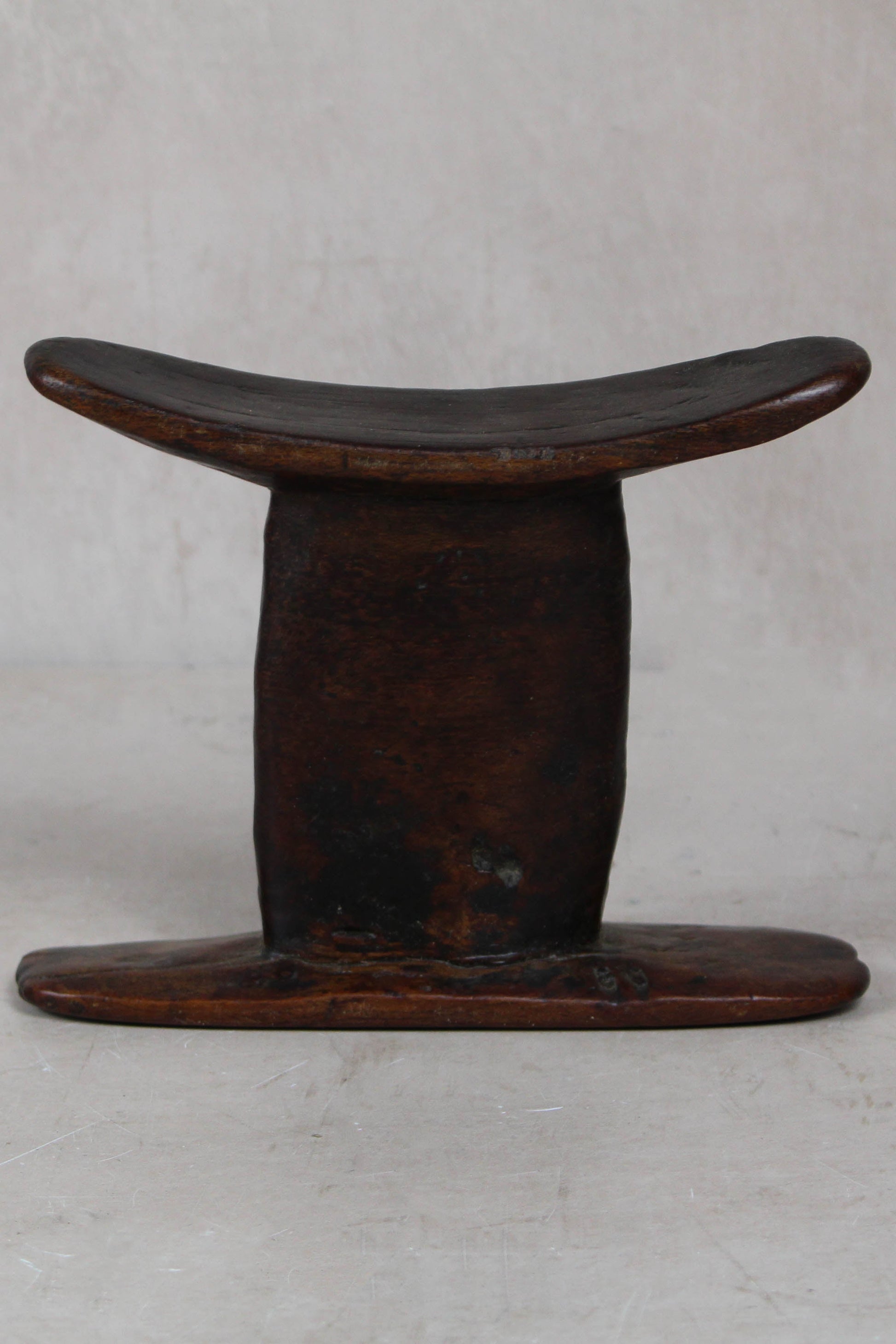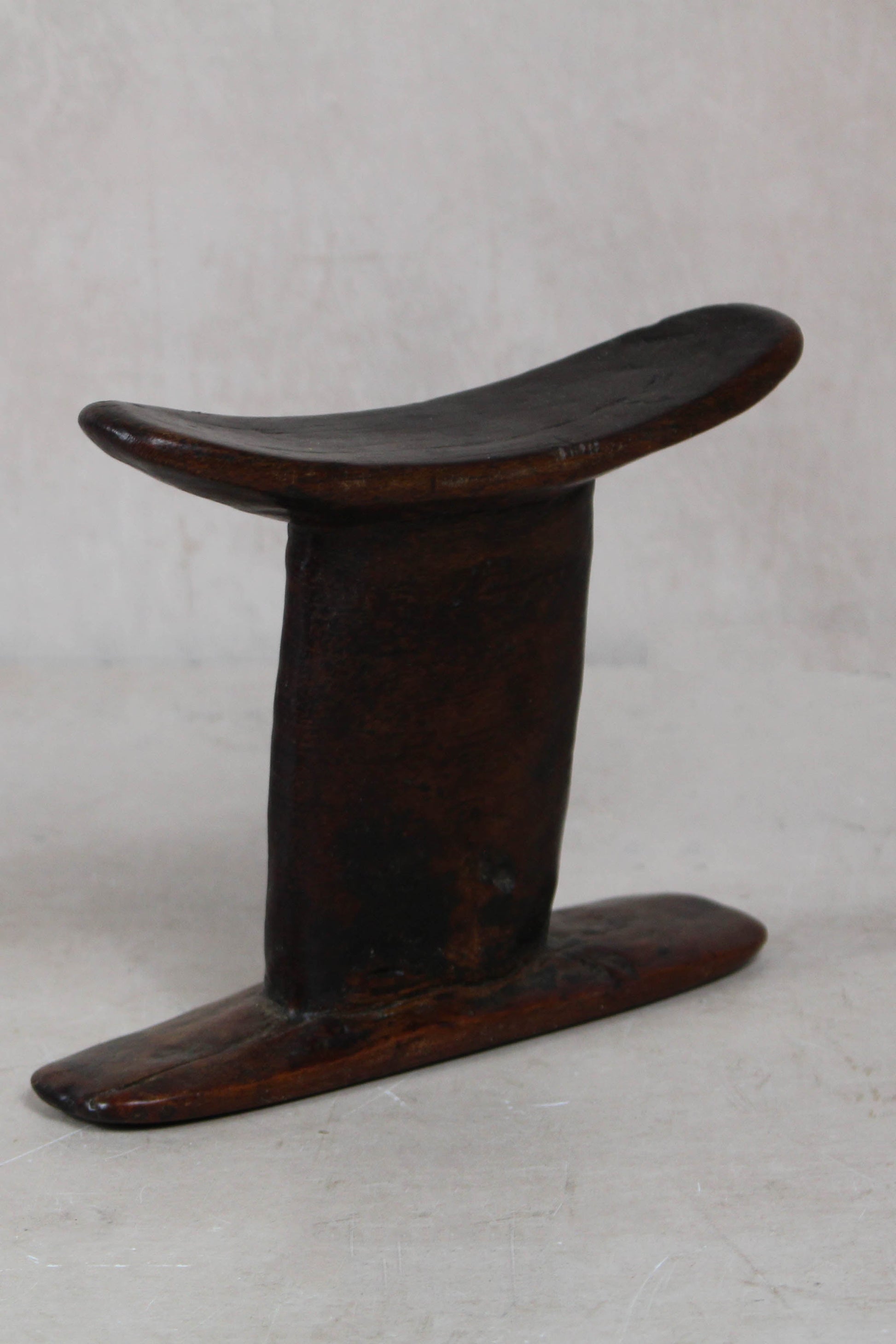 These solid wood Headrests are from groups in southern Ethiopia used to enable people to sleep without interfering with their complicated coiffure (hairstyles). Hairstyles frequently declare their owner's age, gender and status, and are often embellished by accoutrements of a magic-religious nature. Hairstyles therefore need protecting. The headrest also plays a role in nuptial ceremonies.