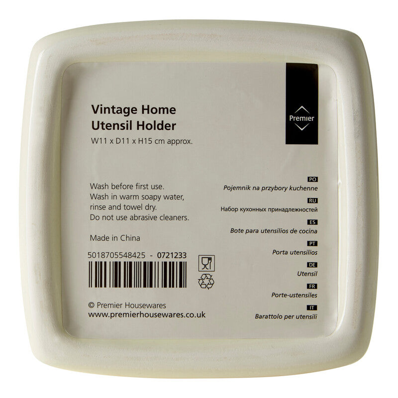Vintage Home Square Cream Utensil Holder With 6 Utensils