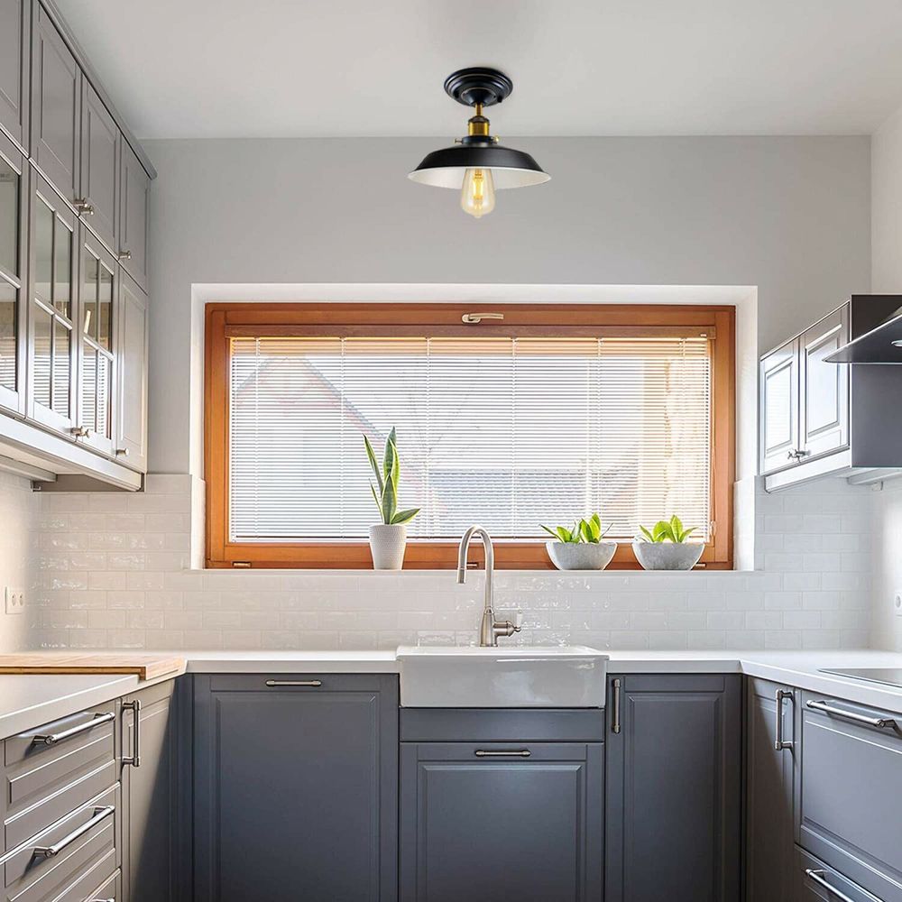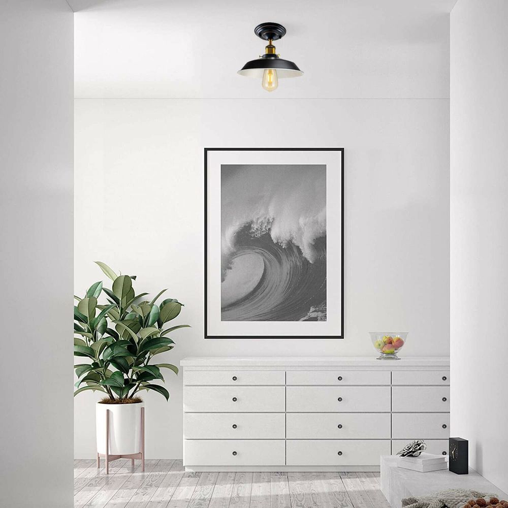 Vintage Industrial Flush Mount Ceiling Light Black Metal Bowl Light Fixture