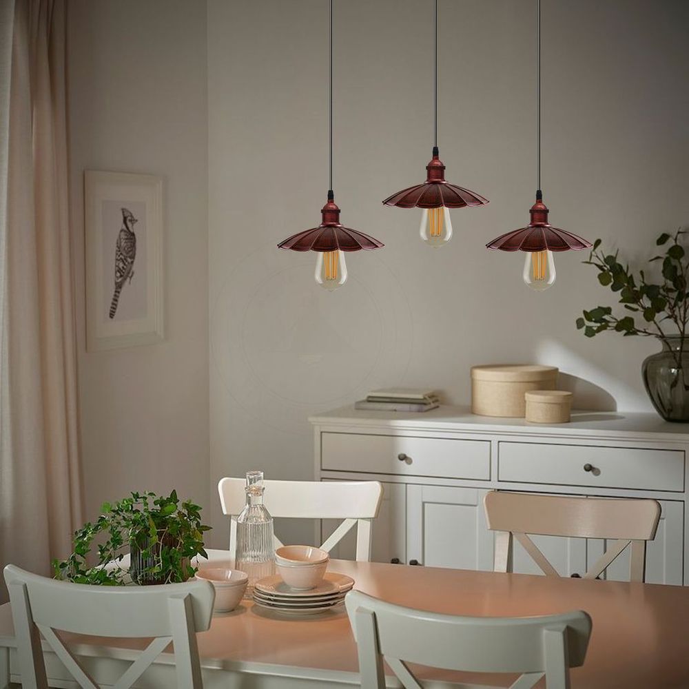 Vintage Industrial Rustic Red 3 Head Pendant - Metal Brushed Light Fitting - Umbrella Shape Lamp Shade - High Quality